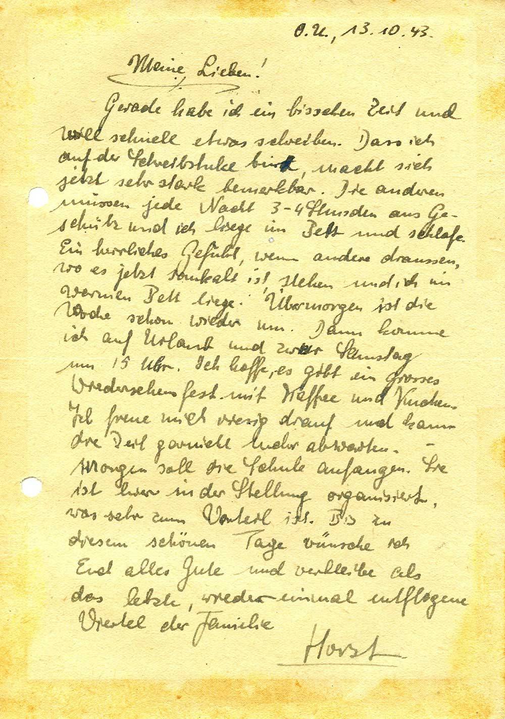 Horst Schmitt an seine Eltern, 13. Oktober 1943