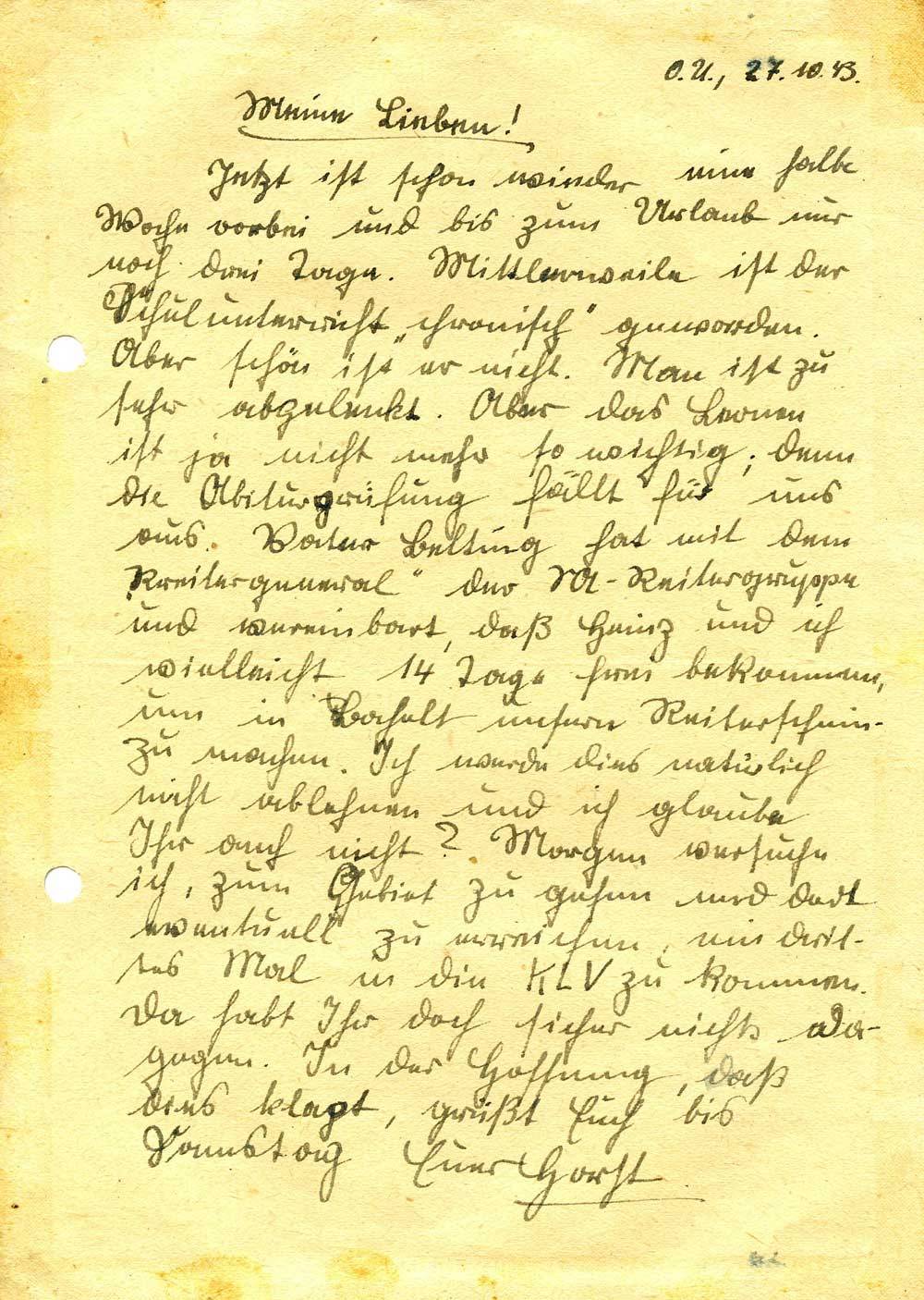 Horst Schmitt an seine Familie, 27. Oktober 1943