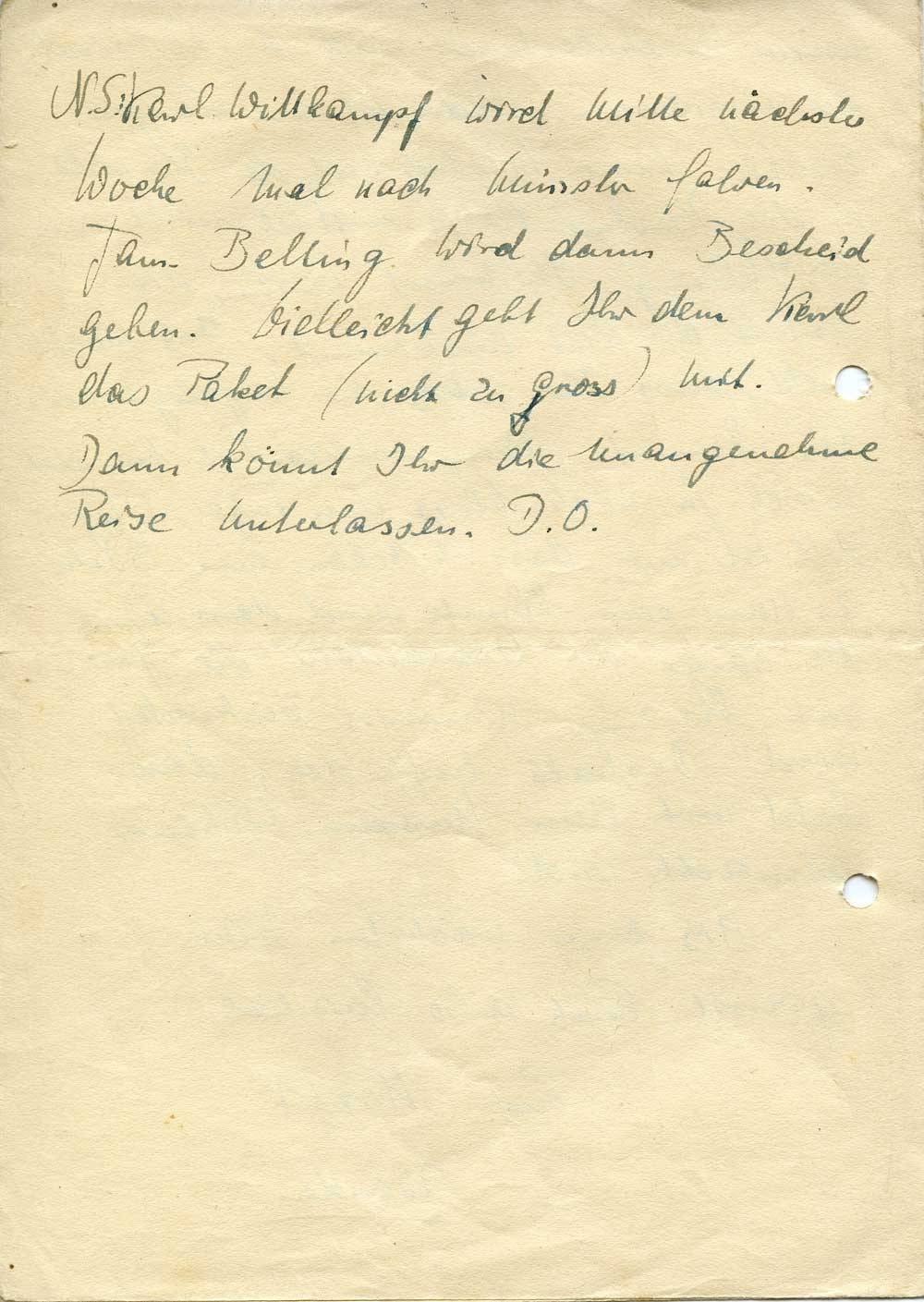 meinen Wäschebestand und den Essvorrat zu vergrösseren. Leider ist zum langen Erzählen keine Möglichkeit, da Ihr nicht in die Kantine dürft und ich nicht aus der Stellung. Ihr müsst wissen, wie es mit der Zeit auskommt. Ich möchte nicht, dass Ihr etwa in Ungelegenheiten kommt. Denn schliesslich handelt es sich ja noch bloss um Tage. Ärgerlich ist nur, dass ich schon eine Woche zu Haus sein könnte und dass durch die Länge der Quarantäne die Freizeit bis zum Kommiss verkürzt wird. Deshalb hoffe ich, dass bald mit dem Unsinn Schluss gemacht wird.