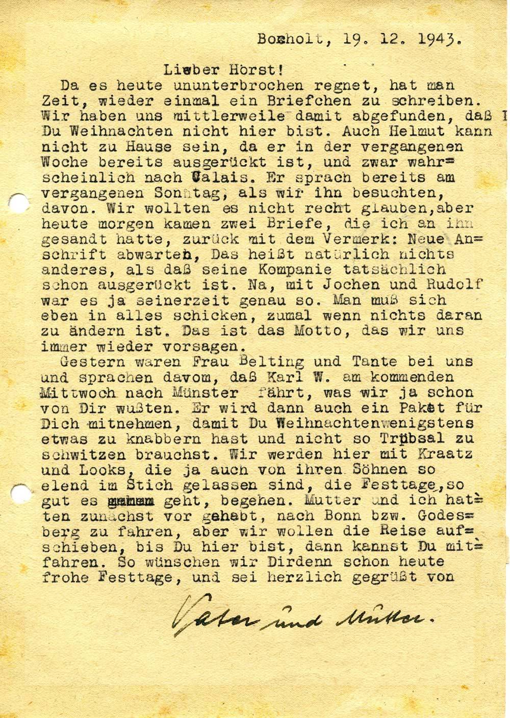 Vater und Mutter Schmitt an Sohn Horst, 19. Dezember 1943