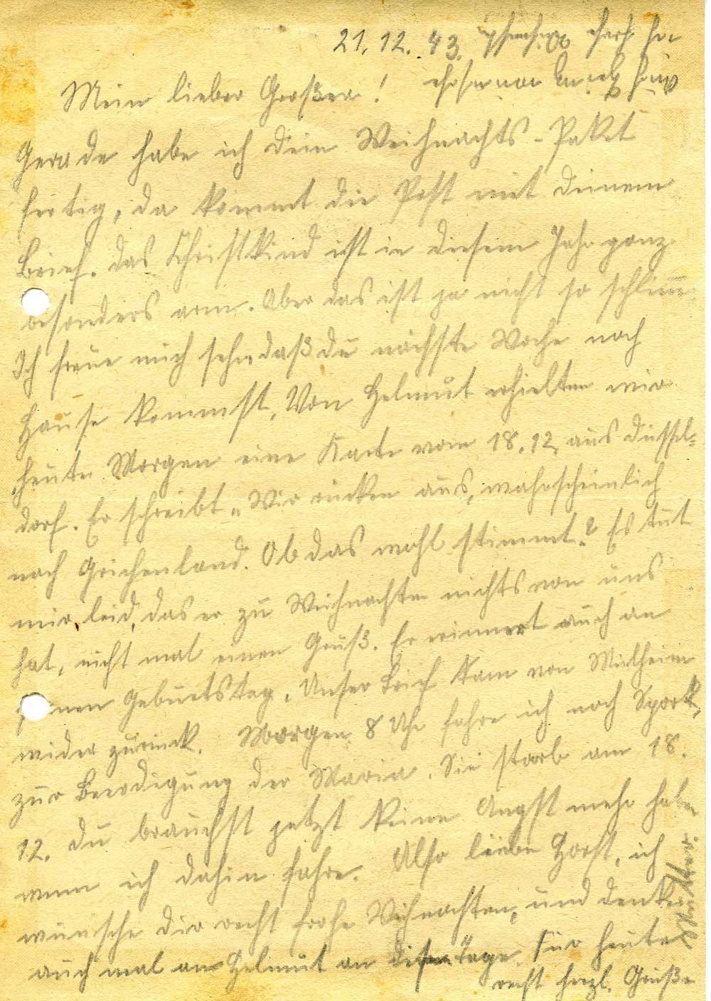 Mutter Schmitt an Sohn Horst, 21. Dezember 1943