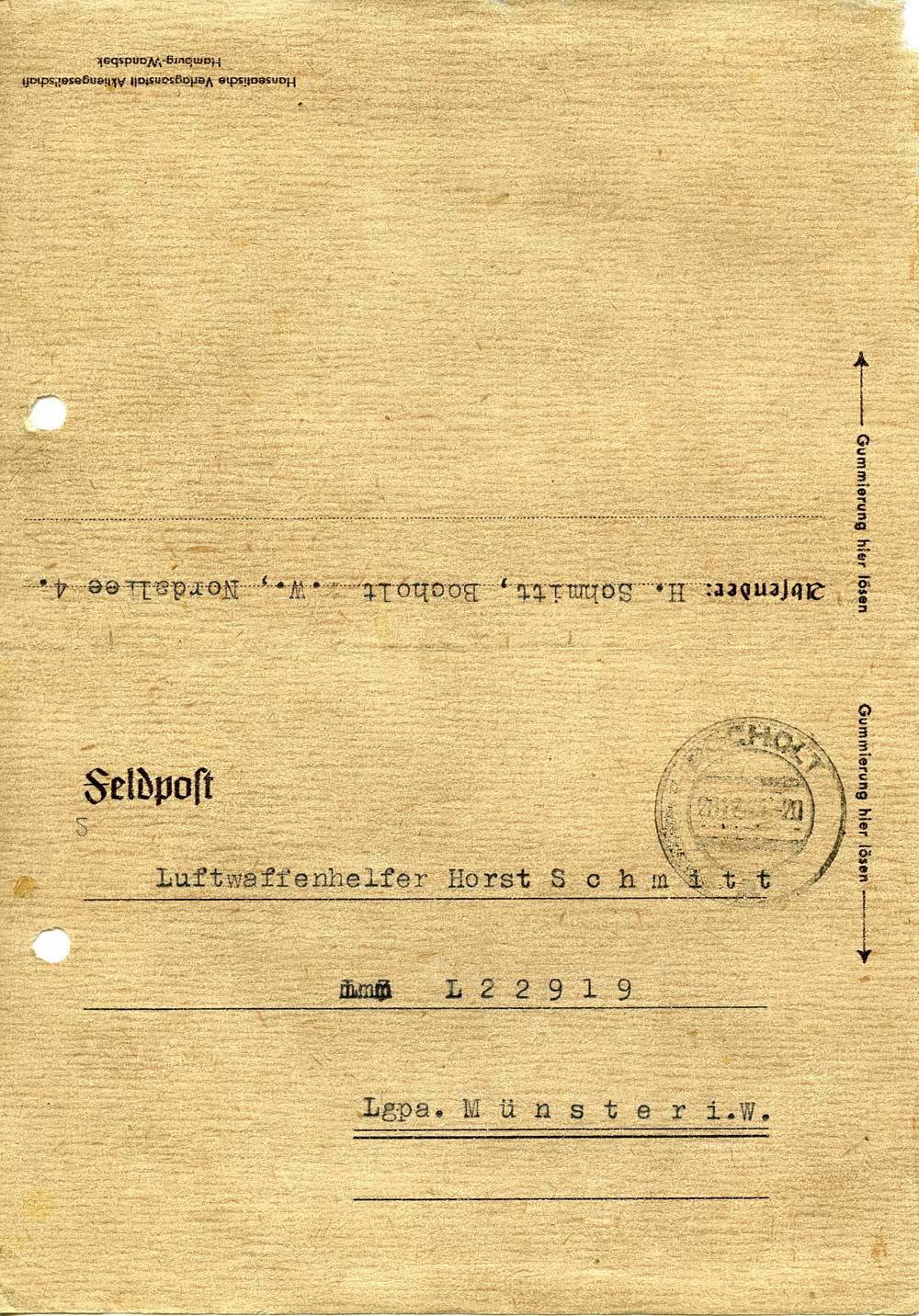 Absender: H. Schmitt, Bocholt i. W., Nordallee 4.