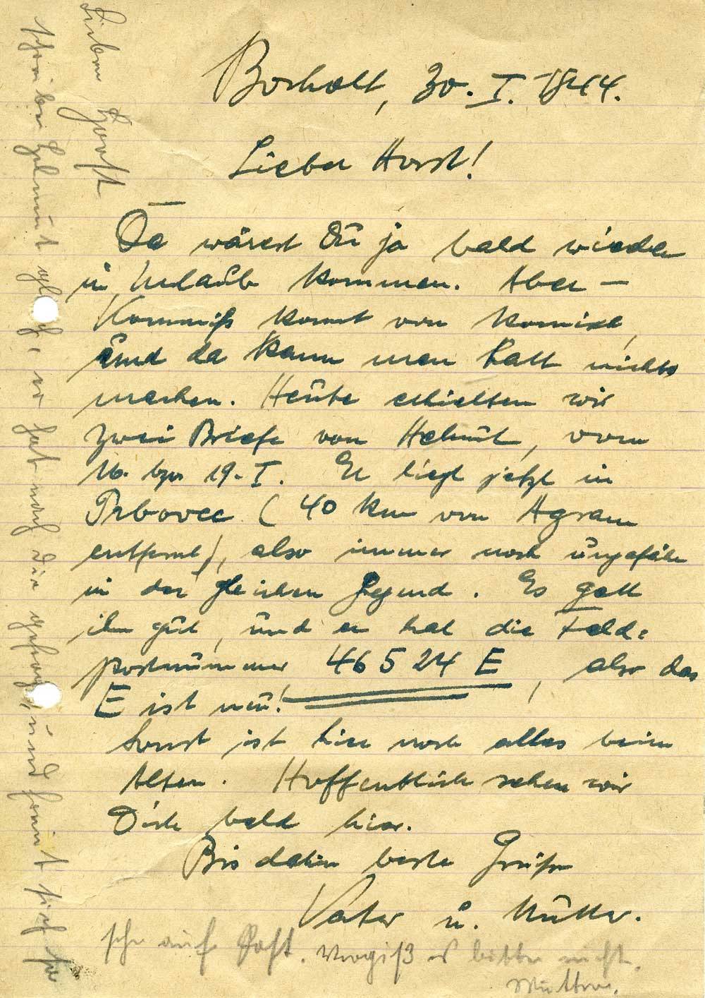 Vater und Mutter Schmitt an Sohn Horst, 30. Januar 1944