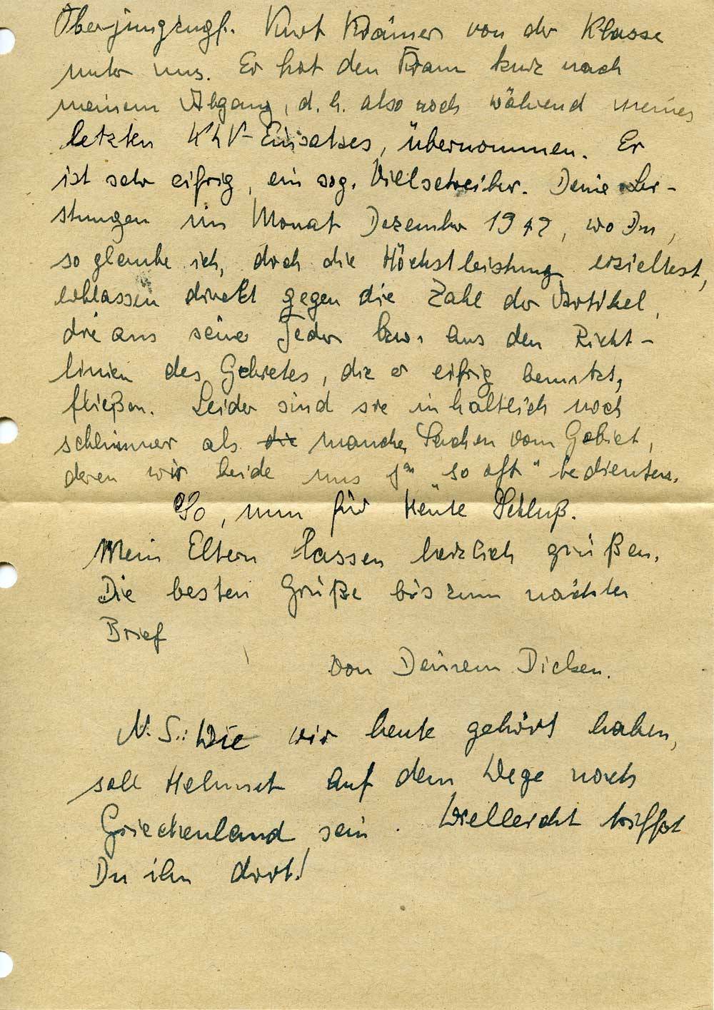 N.S.: Wie wir heute gehört haben, soll Helmut auf dem Wege nach Griechenland sein. Vielleicht triffst Du ihn dort!