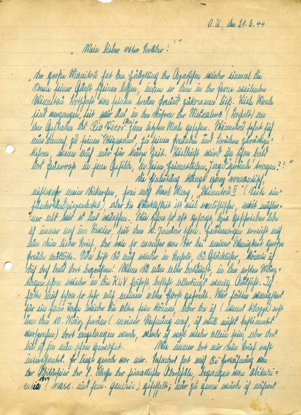 Freund Rudolf an Horst Schmitt, 21. Februar 1944