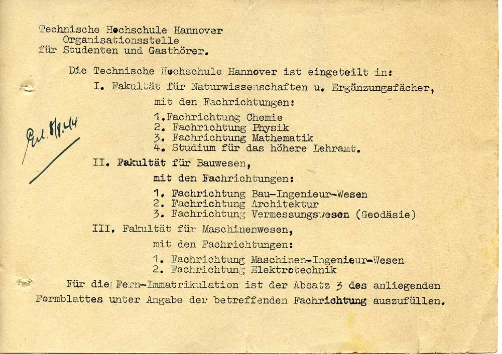 Die Technische Hochschule Hannover ist eingeteilt in: