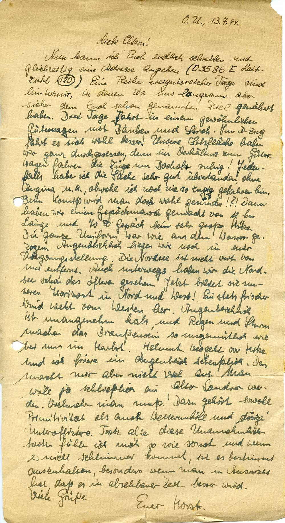Horst Schmitt an seine Eltern, 13. Juli 1944