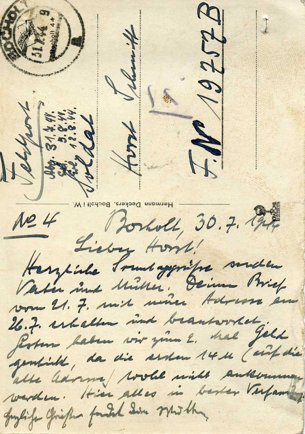 Vater Schmitt an Sohn Horst, 30. Juli 1944