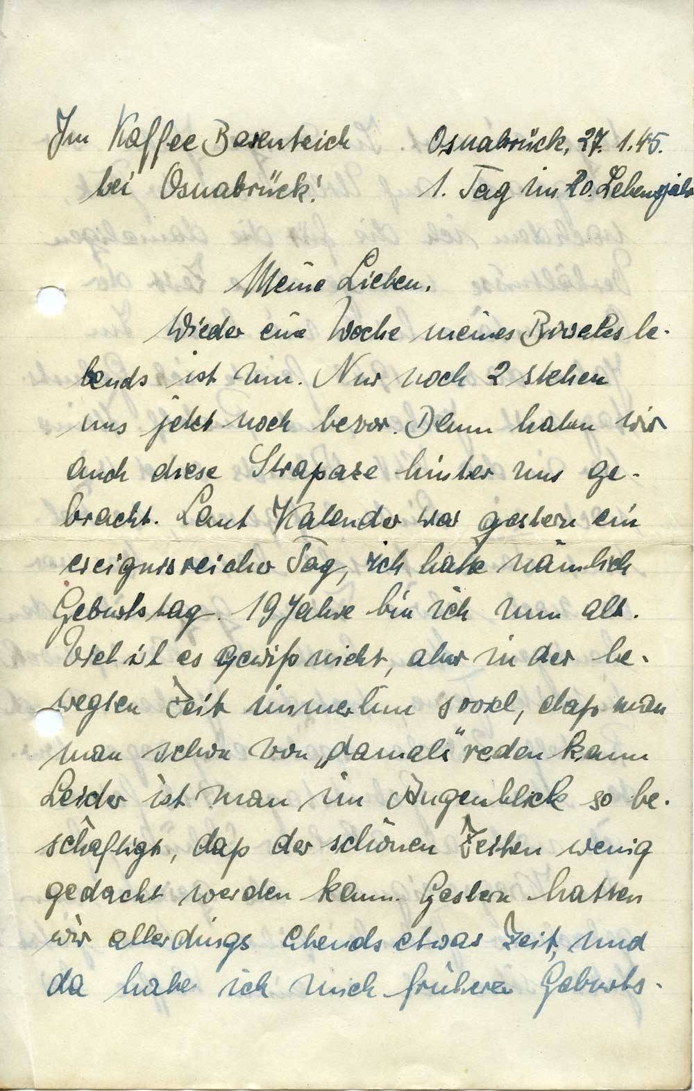 Horst Schmitt an seine Eltern, 27. Januar 1945