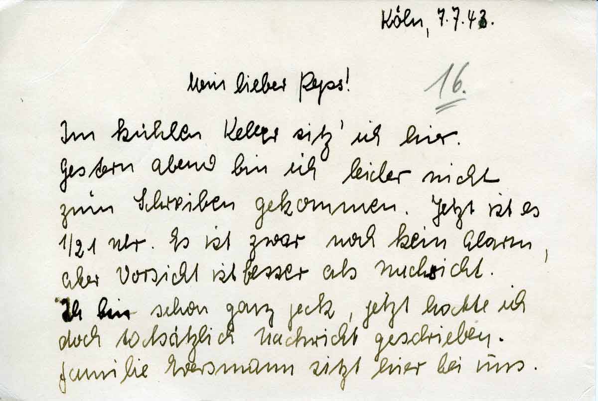 Im kühlen Keller sitz‘ ich hier. Gestern abend bin ich leider nicht zum Schreiben gekommen. Jetzt ist es ½1 Uhr. Es ist zwar noch kein Alarm, aber Vorsicht ist besser als Nachsicht.