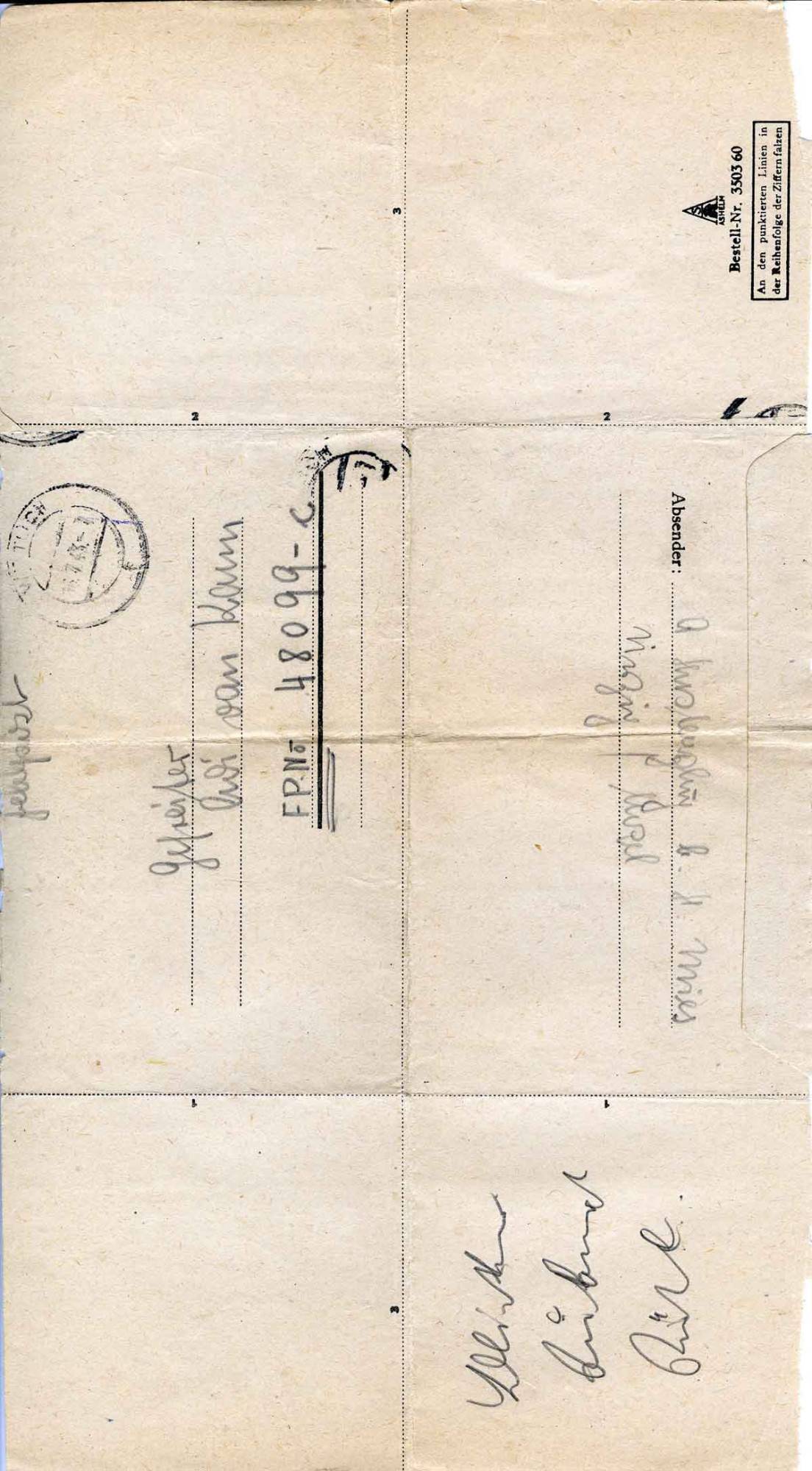 Anneliese Hastenplug an Andreas van Kann, 15. Juli 1943