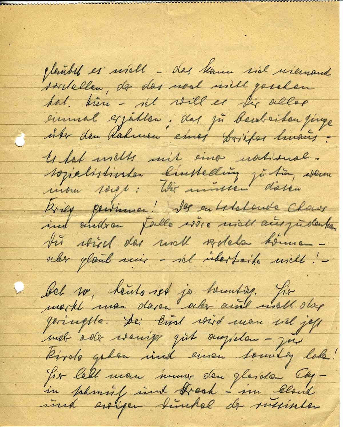 Es hat nichts mit einer national-sozialistischen Einstellung zu tun, wenn man sagt: Wir müssen diesen Krieg gewinnen! Das entstehende Chaos im anderen Falle wäre nicht auszudenken. Du wirst das nicht verstehen können - aber glaub’ mir - ich übertreibe nicht! -