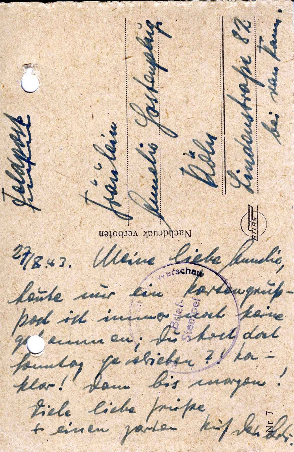 Andreas van Kann an Annliese Hastenplug, 27. August 1943