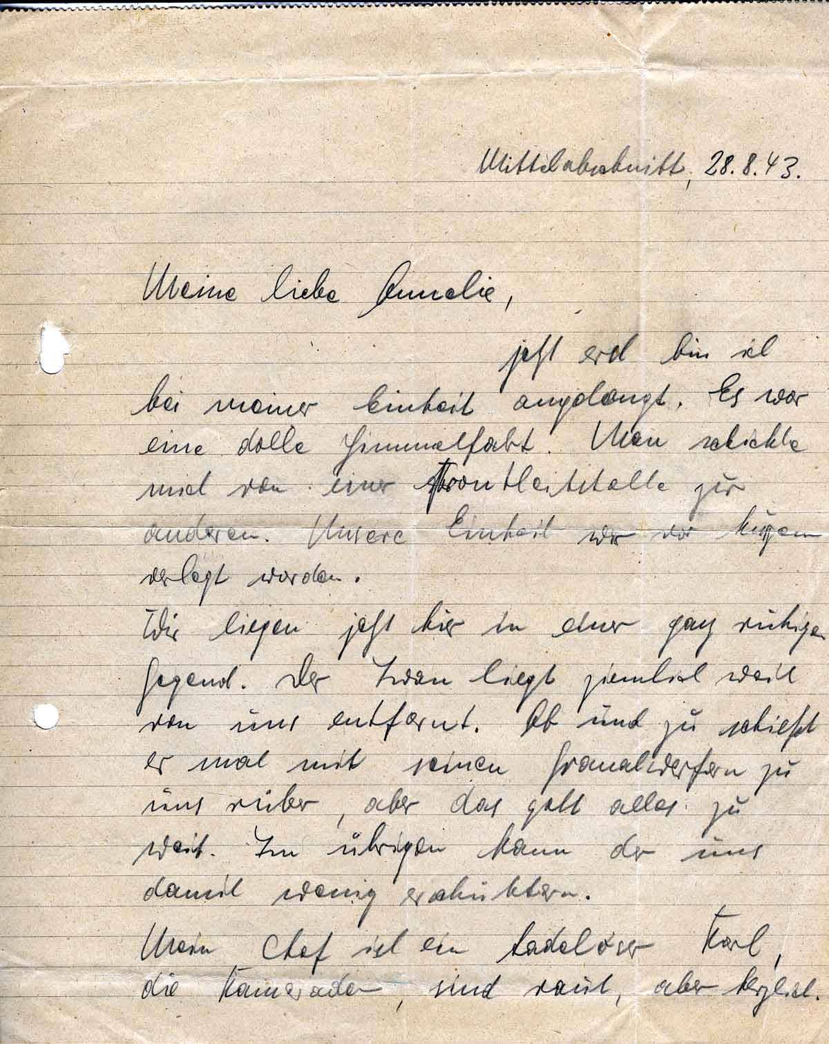 Andreas van Kann an Annliese Hastenplug, 28. August 1943