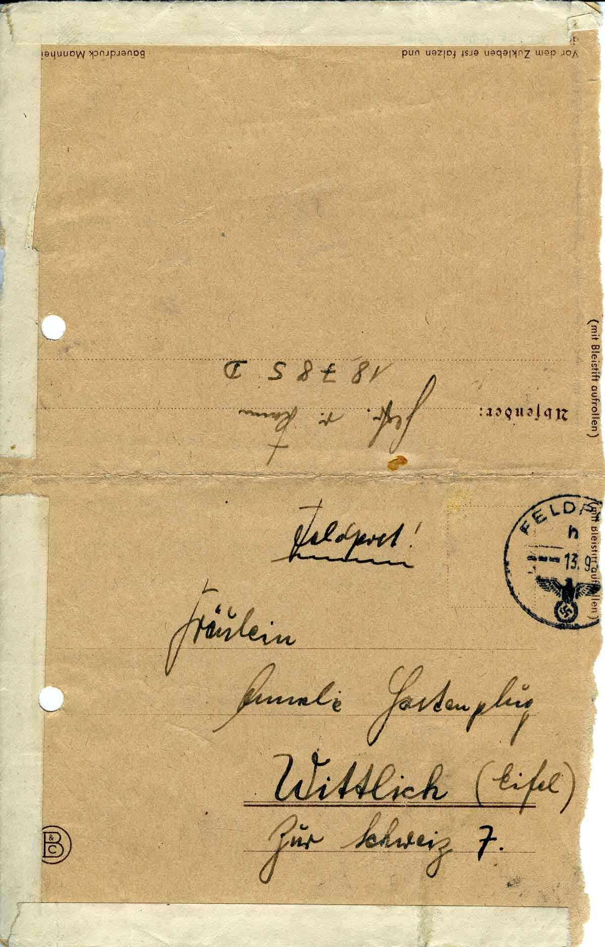 Andreas van Kann an Annliese Hastenplug, 7. September 1943