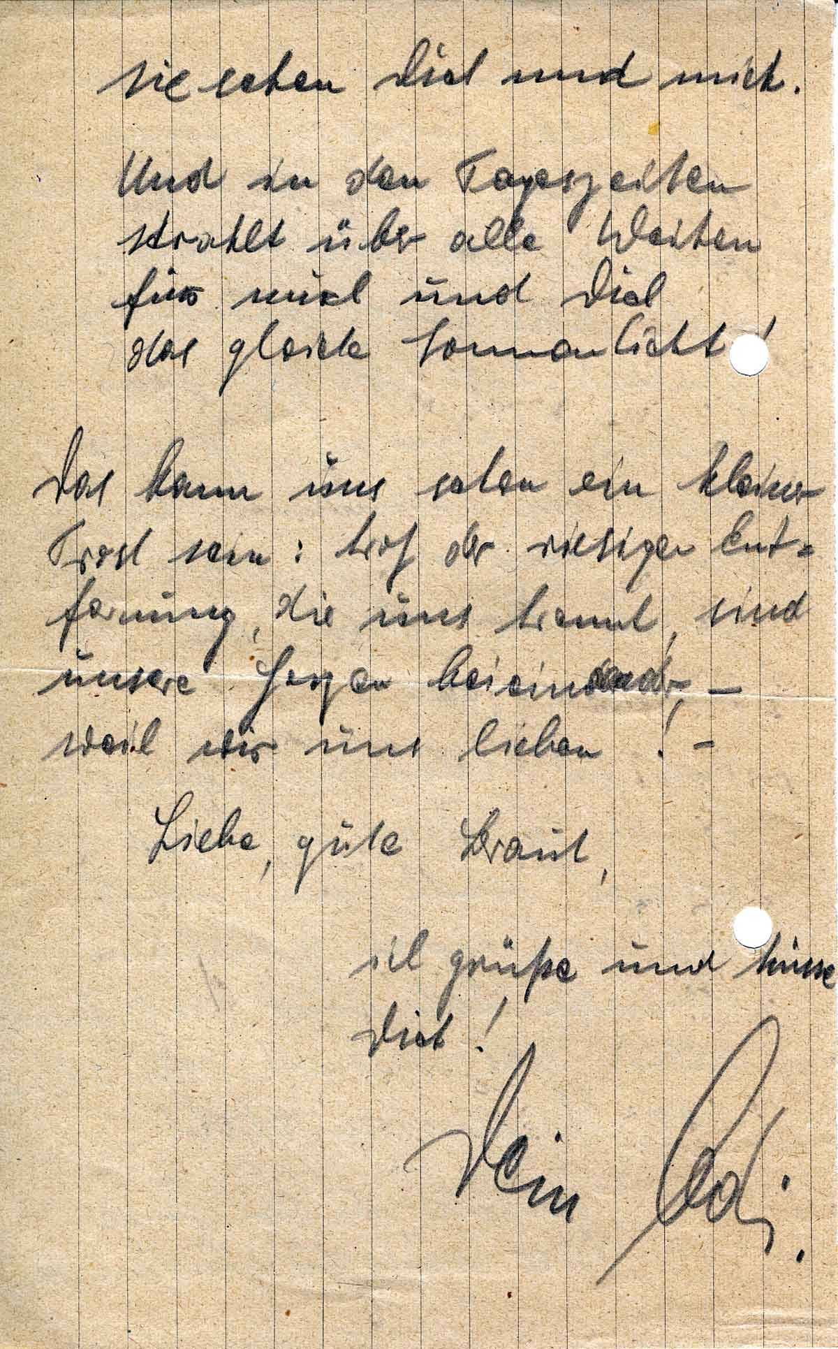 Und ich liebe Dich, Annelie! Es ist ja alles so leicht zu ertragen, wenn man weiß, daß man einen geliebten Menschen hat, und daß hinter allem das schönste von allem: das Wiedersehen steht.