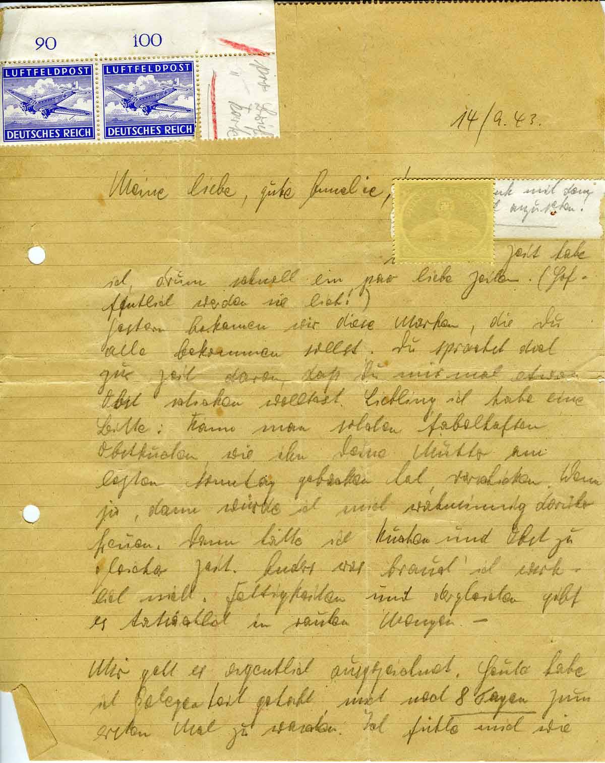 Andreas van Kann an Annliese Hastenplug, 14. September 1943