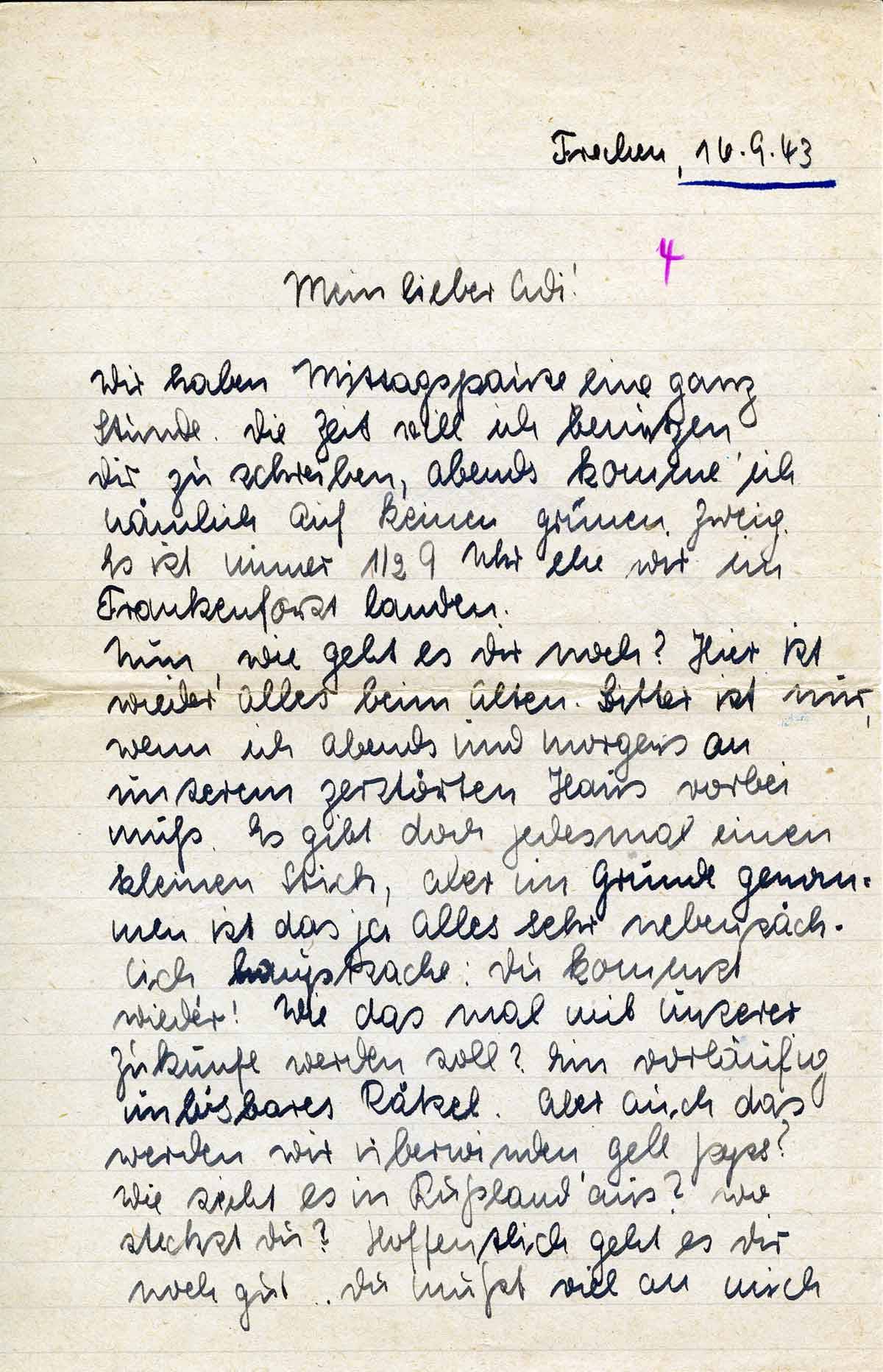 Anneliese Hastenplug an Andreas van Kann, 16. September 1943