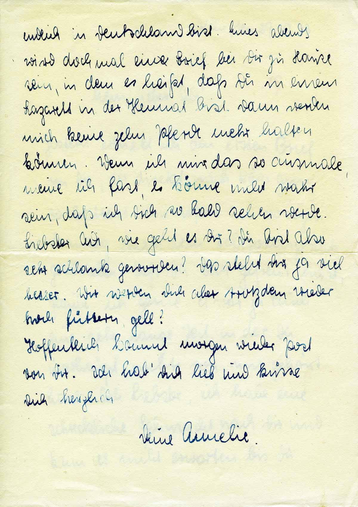 Hoffentlich kommt morgen wieder Post von Dir. Ich hab’ Dich lieb und küsse Dich herzlich