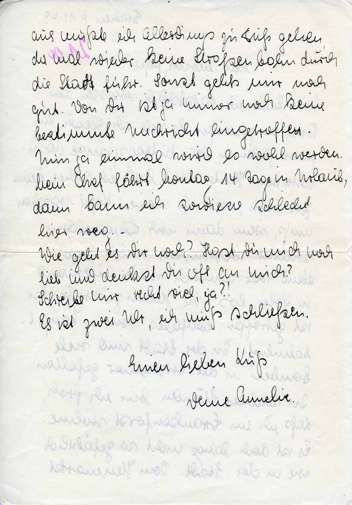Wie geht es Dir noch? Hast Du mich noch lieb und denkst Du oft an mich? Schreibe mir recht viel, ja?!