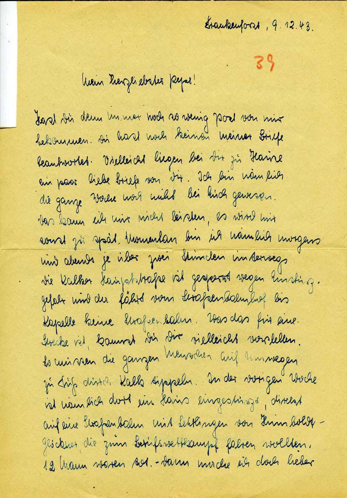 Anneliese Hastenplug an Andreas van Kann, 9. Dezember 1943