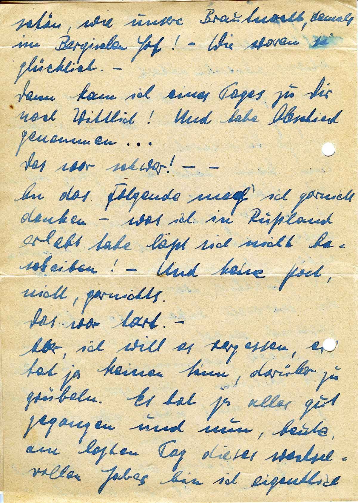 An das Folgende mag’ ich garnicht denken - war ich in Rußland erlebt habe läßt sich nicht beschreiben! - Und keine Post, nicht, garnichts.