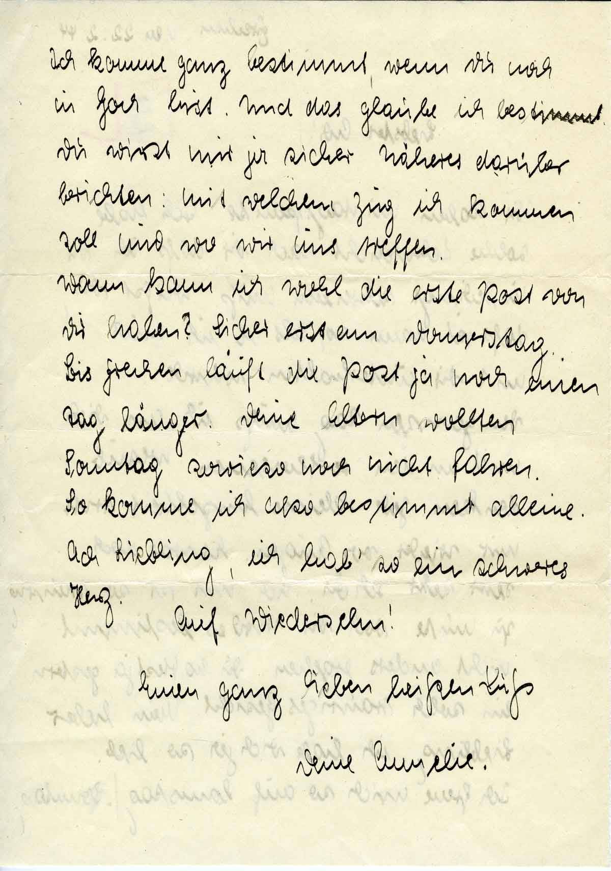 Wann kann ich wohl die erste Post von Dir haben? Sicher erst am Donnerstag. Bis Frechen läuft die Post ja noch einen Tag länger. Deine Eltern wollten Sonntag sowieso noch nicht fahren. So komme ich also bestimmt alleine.