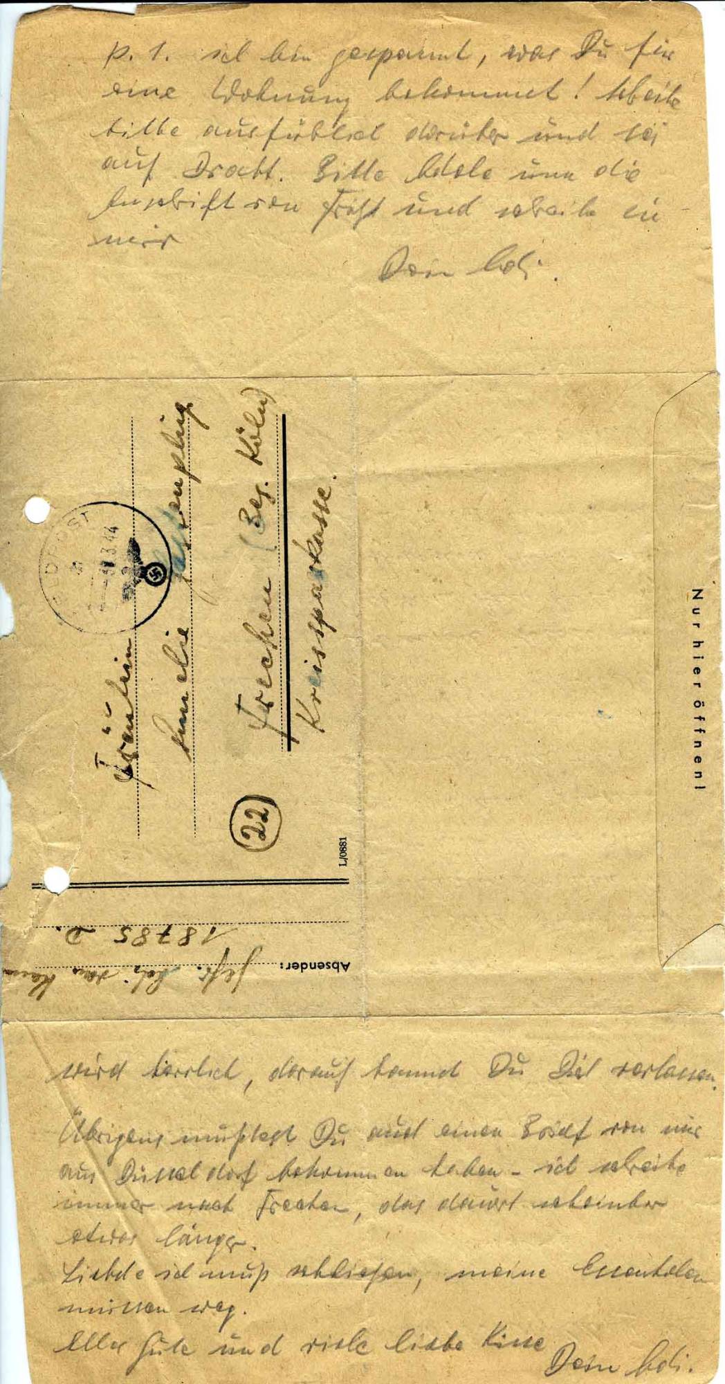 P.S. ich bin gespannt, was Du für eine Wohnung bekommst! Schreibe bitte ausführlich darüber und sei auf Draht. Bitte Adele um die Anschrift von Fritz und schreibe sie mir