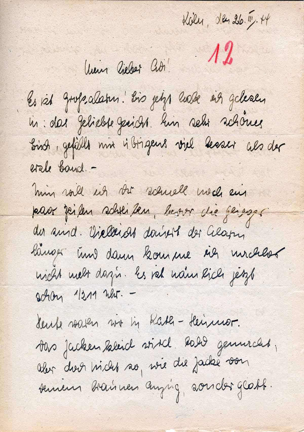 Nun will ich Dir schnell noch ein paar Zeilen schreiben, bevor die Flieger da sind. Vielleicht dauert der Alarm länger und dann komme ich nachher nicht mehr dazu. Es ist nämlich jetzt schon ½ 11 Uhr.