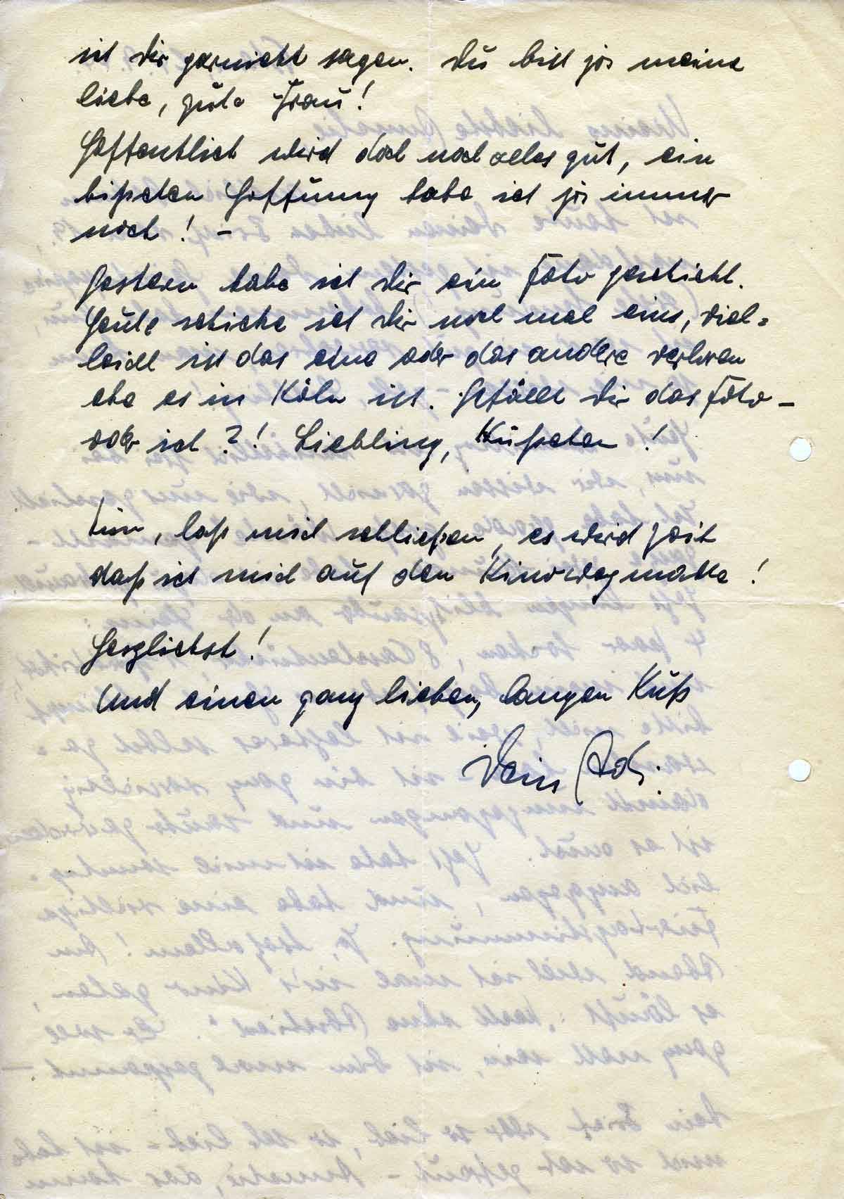 Gestern habe ich Dir ein Foto geschickt. Heute schicke ich Dir noch mal eins, vielleicht ist das eine oder das andere verloren ehe es in Köln ist. Gefällt Dir das Foto - oder ich?! Liebling, Küßchen!