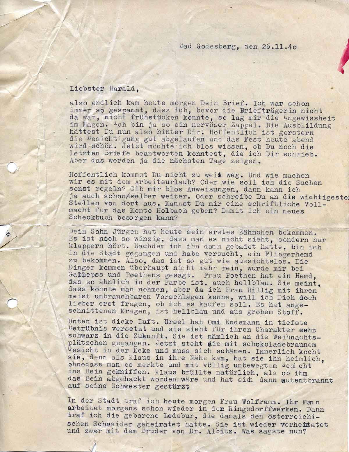 Charlotte Endemann an ihren Mann Harald, 26. November 1940