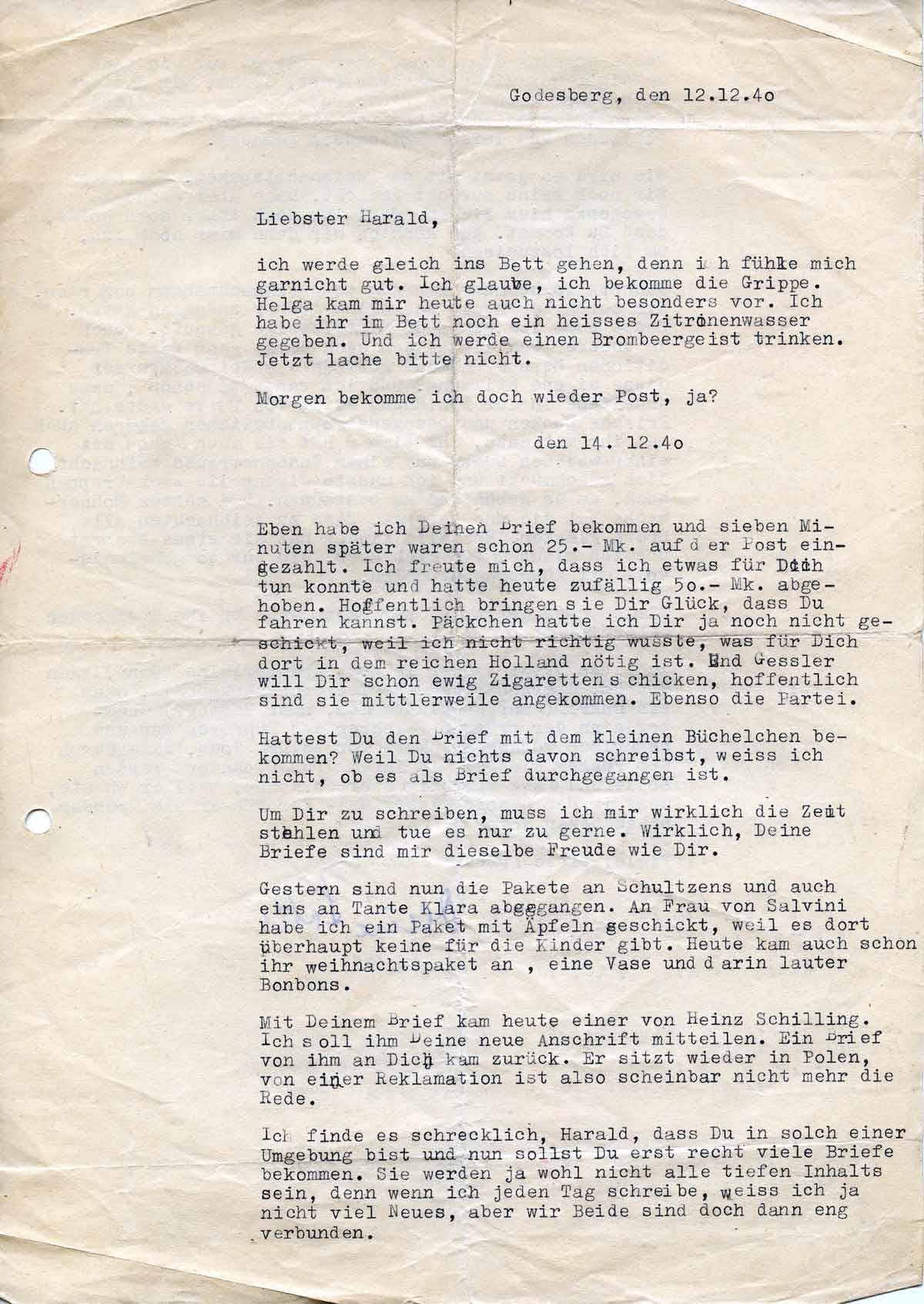 Charlotte Endemann an ihren Mann Harald, 12. Dezember 1940