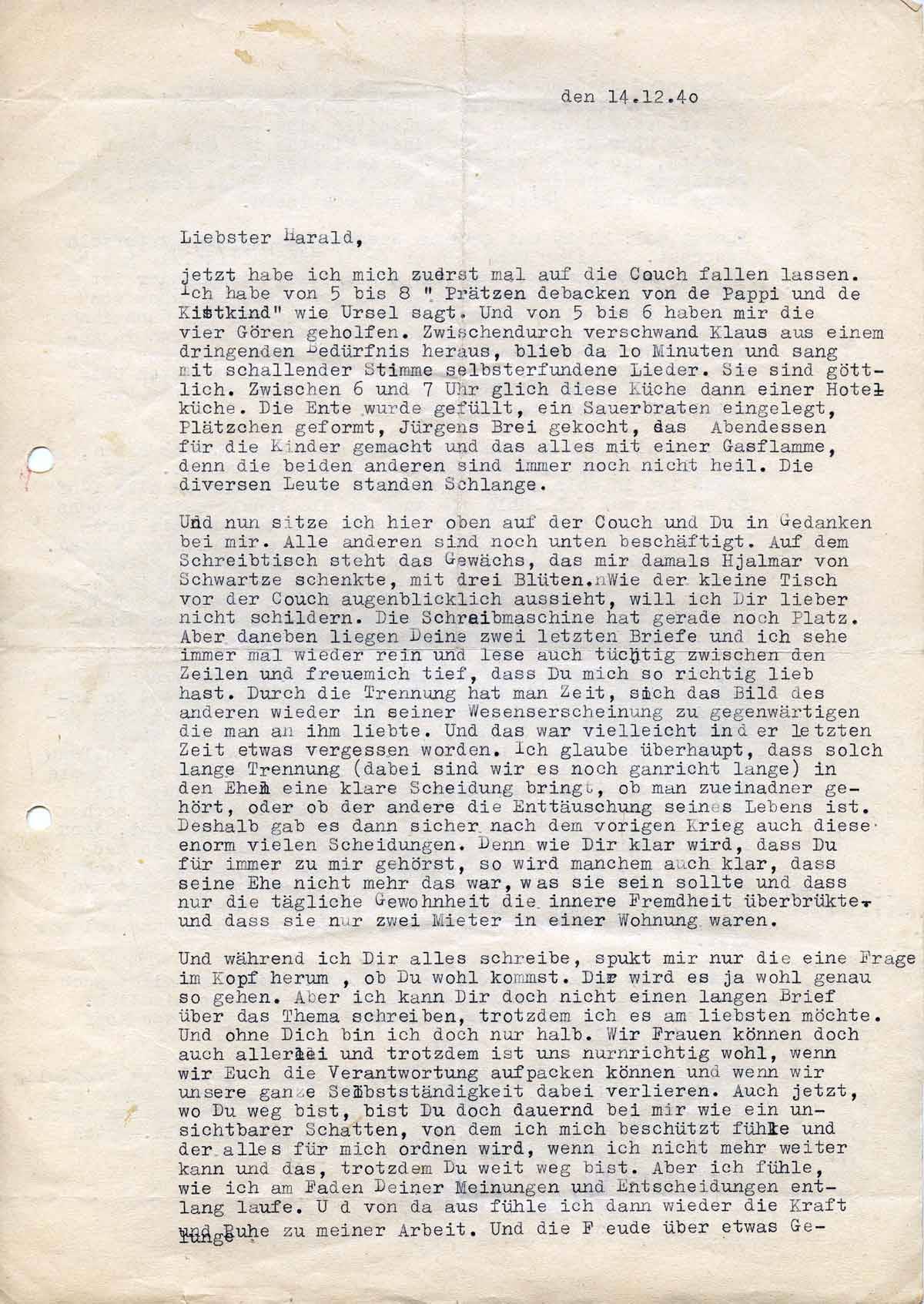 Charlotte Endemann an ihren Mann Harald, 14. Dezember 1940