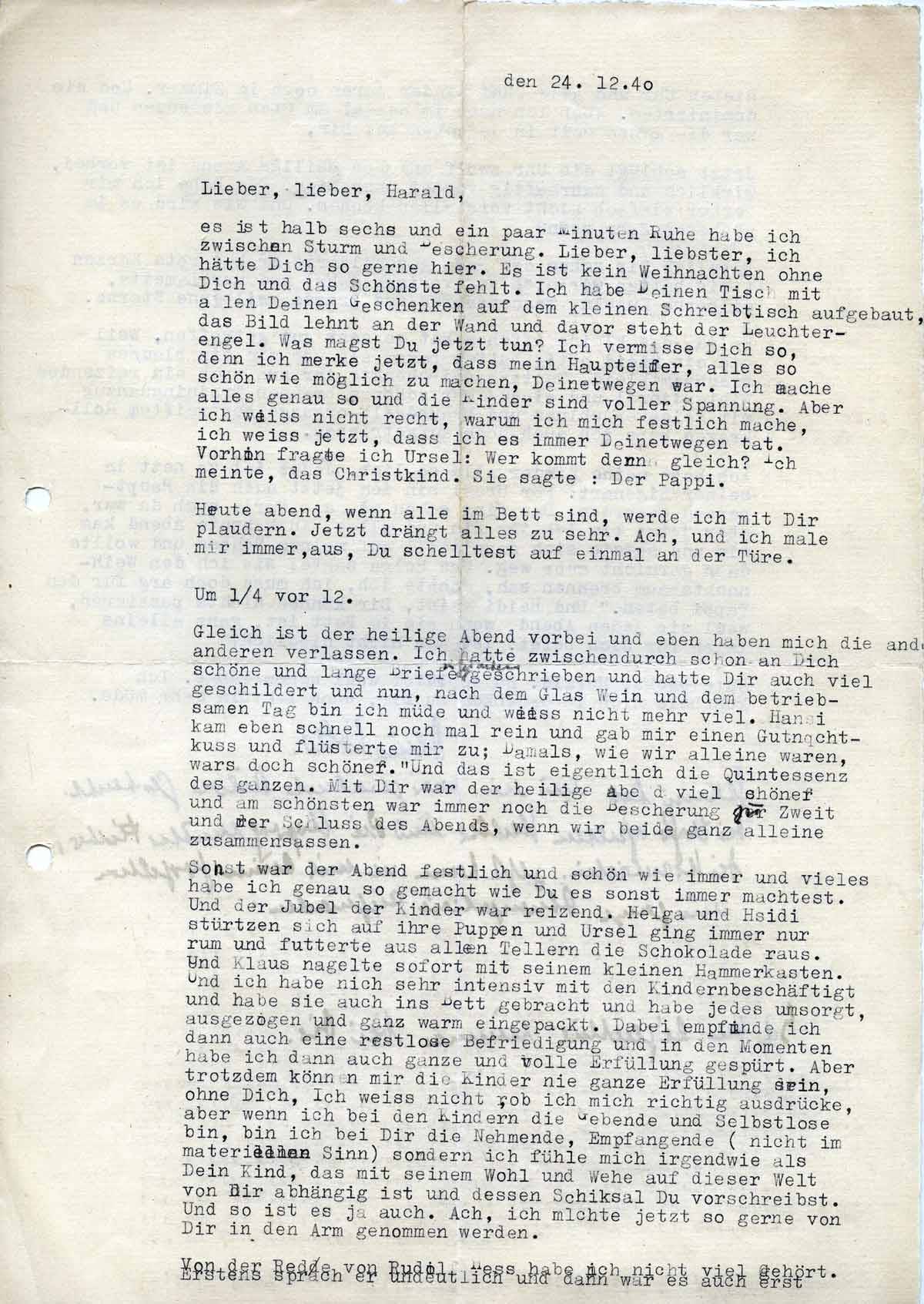 Charlotte Endemann an ihren Mann Harald, 24. Dezember 1940