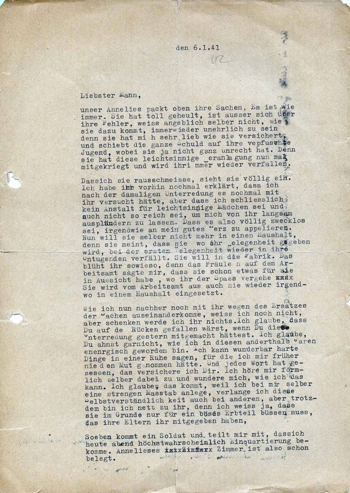 Charlotte Endemann an ihren Mann Harald, 6. Januar 1942