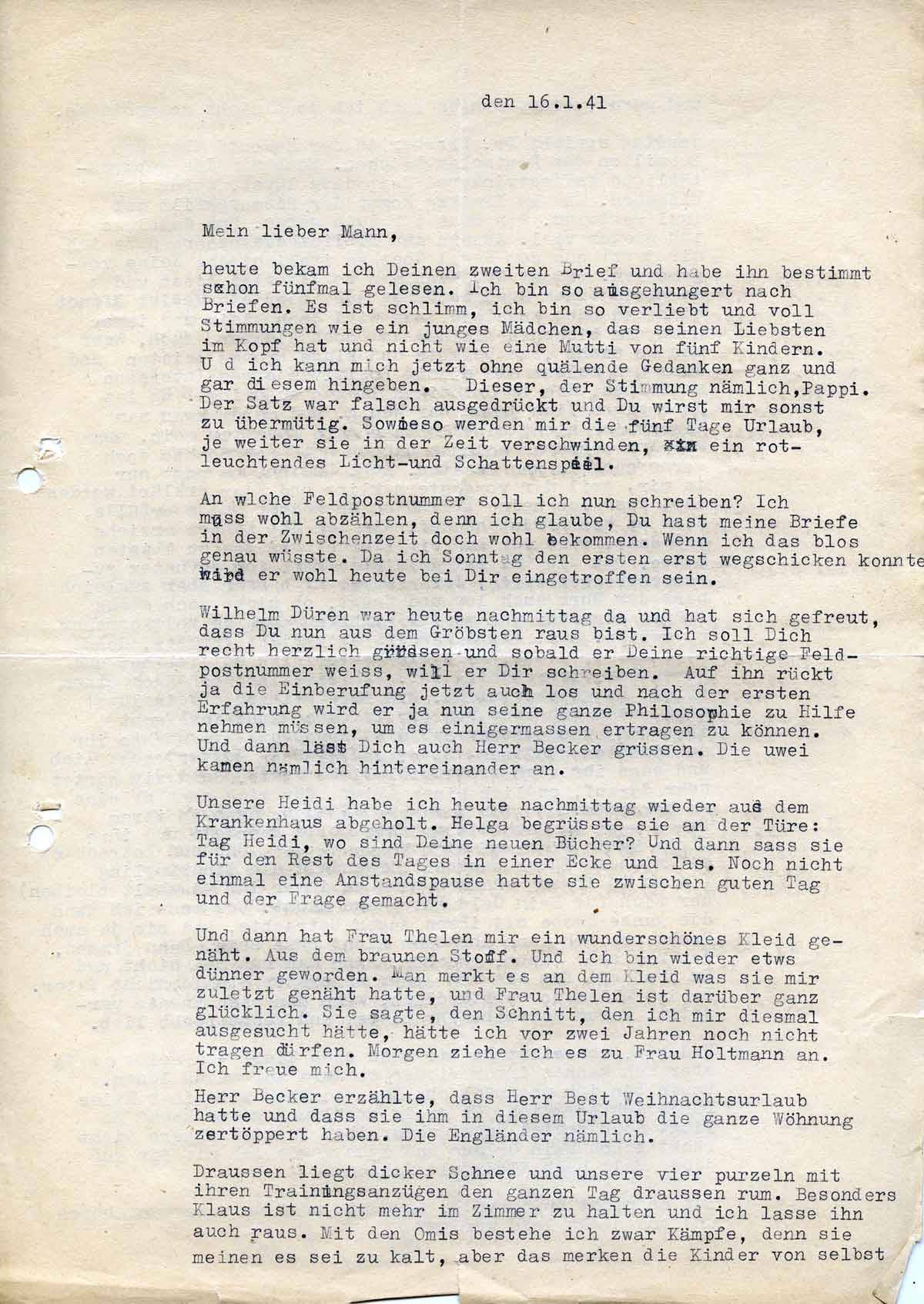 Charlotte Endemann an ihren Mann Harald, 16. Januar 1941