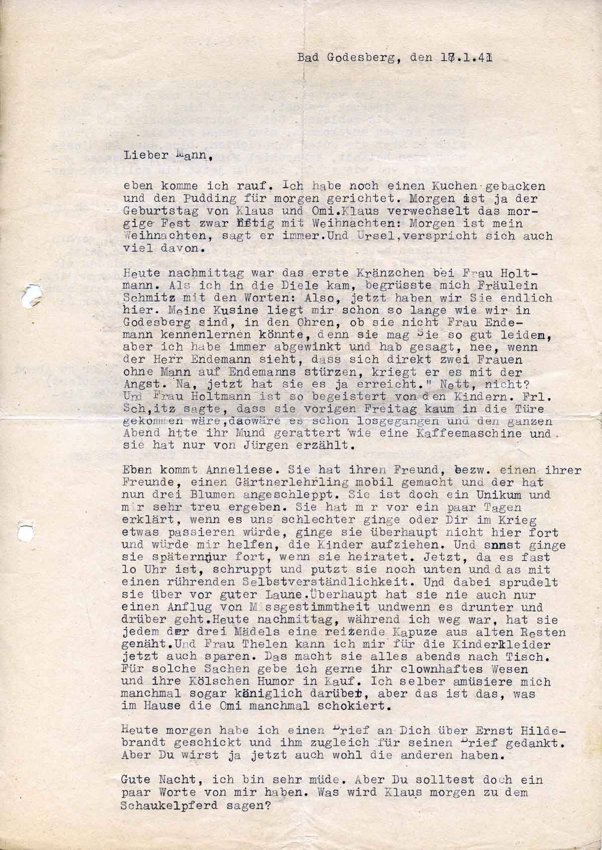 Charlotte Endemann an ihren Mann Harald, 17. Januar 1941