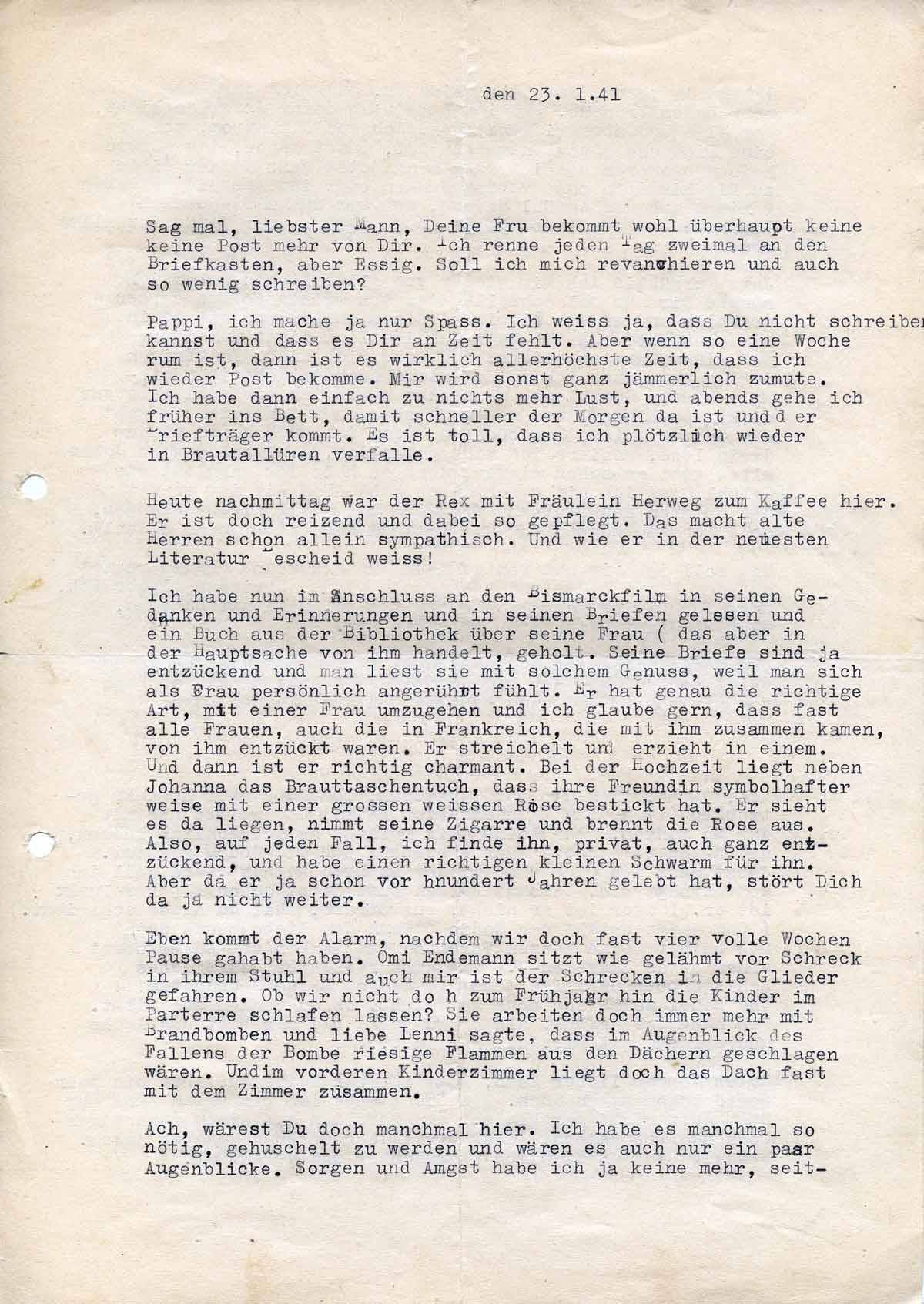 Charlotte Endemann an ihren Mann Harald, 23. Januar 1941