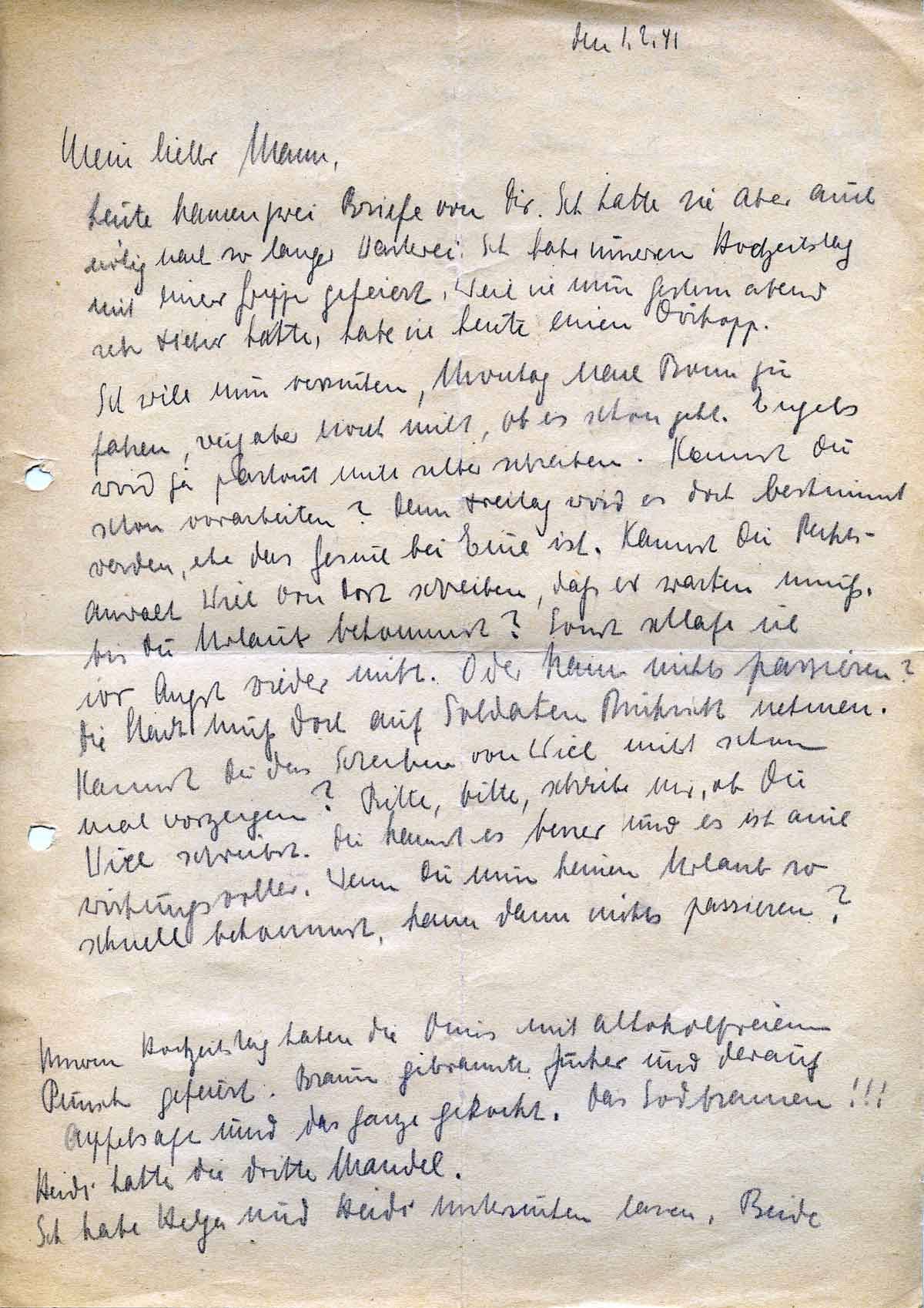 Charlotte Endemann an ihren Mann Harald, 1. Februar 1941