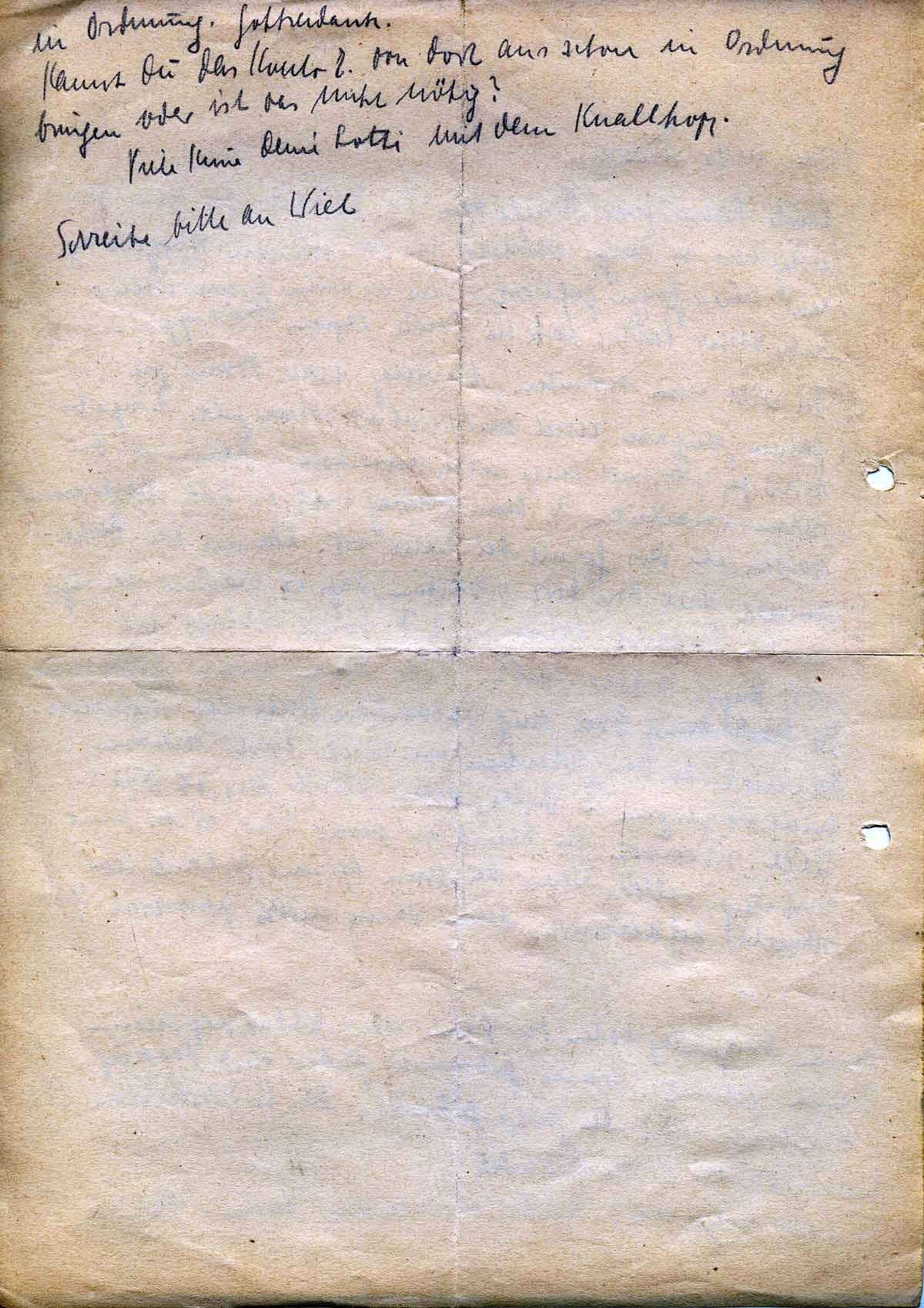 Ich will nun versuchen, Montag nach Bonn zu fahren, weiß aber noch nicht, ob es schon geht. Engels wird ja partout nicht selber schreiben. Kannst Du schon vorarbeiten? Denn Freitag wird es doch bestimmt werden, ehe das Gesuch bei Euch ist. Kannst Du Rechtsanwalt Weil von dort schreiben, daß er warten muß, bis Du Urlaub bekommst? Sonst schlafe ich vor Angst wieder nicht. Oder kann nichts passieren? Die Stadt muß doch auf Soldaten Rücksicht nehmen. Kannst Du das Schreiben von Weil nicht schon mal vorzeigen? Bitte, bitte, schreibe mir, ob Du Wiel schreibst. Du kannst es besser und es ist auch wirkungsvoller. Wenn Du nun keinen Urlaub so schnell bekommst, kann dann nichts passieren?