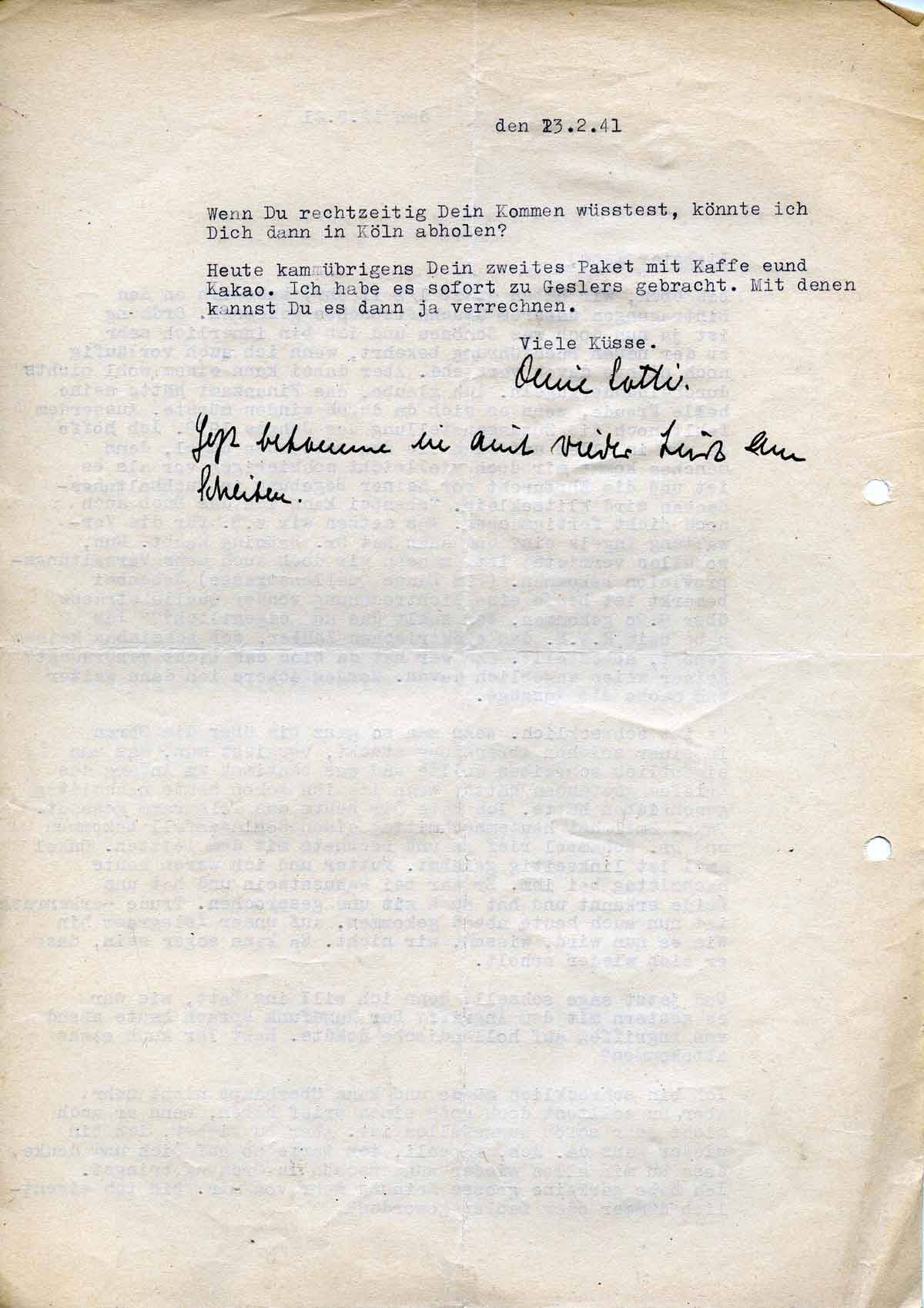 Charlotte Endemann an ihren Mann Harald, 12. Februar 1941