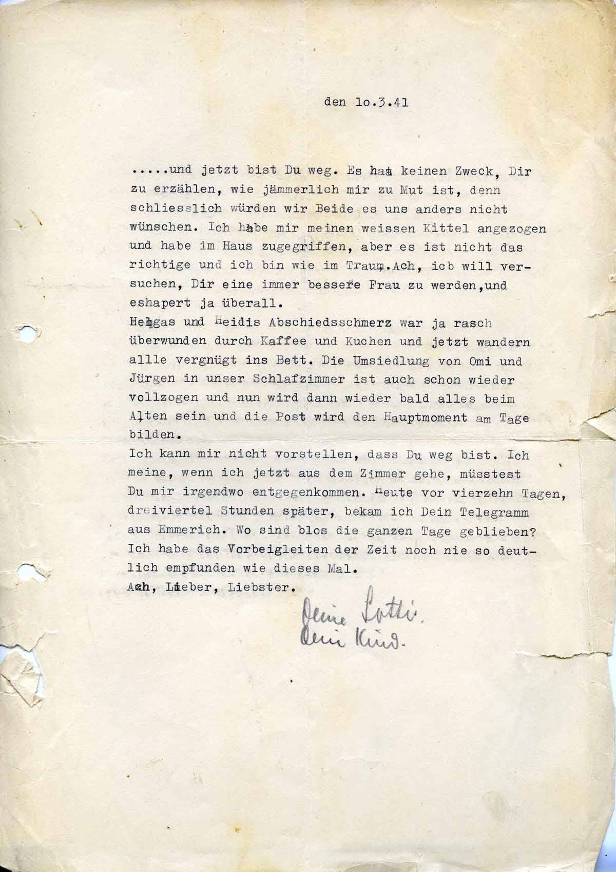 Charlotte Endemann an ihren Mann Harald, 10. März 1941