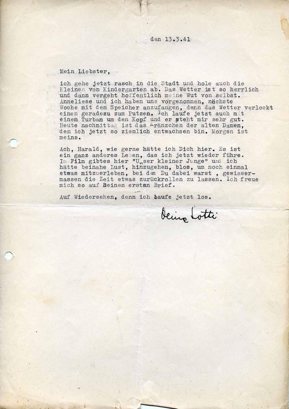Charlotte Endemann an ihren Mann Harald, 13. März 1941