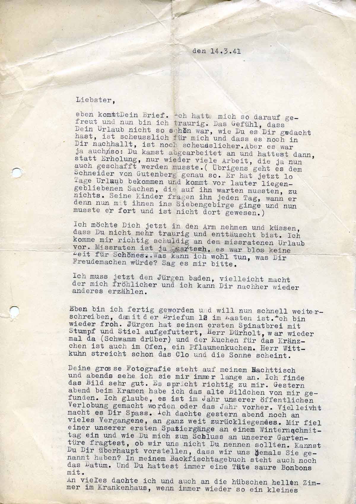Charlotte Endemann an ihren Mann Harald, 14. März 1941
