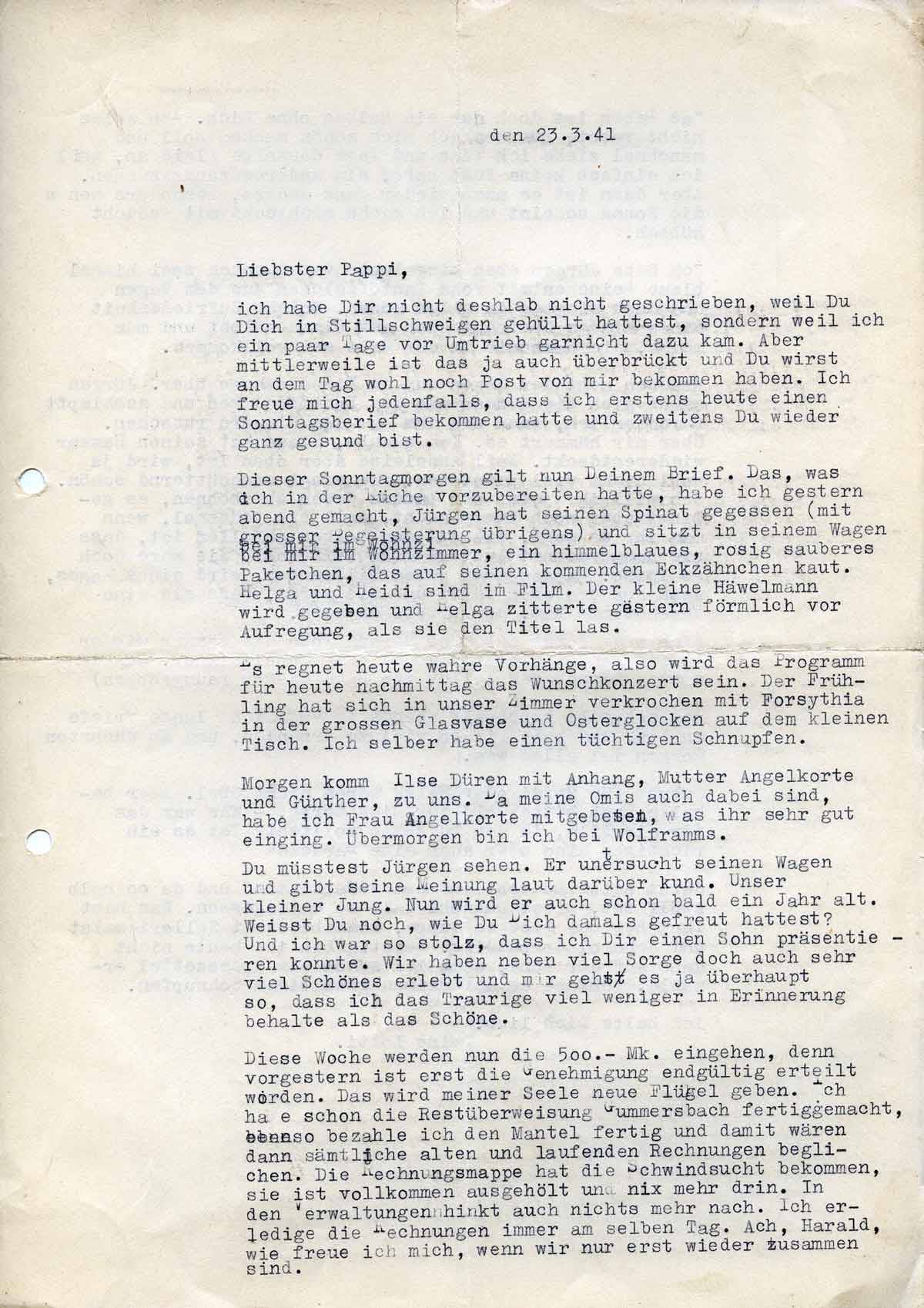 Charlotte Endemann an ihren Mann Harald, 23. März 1941