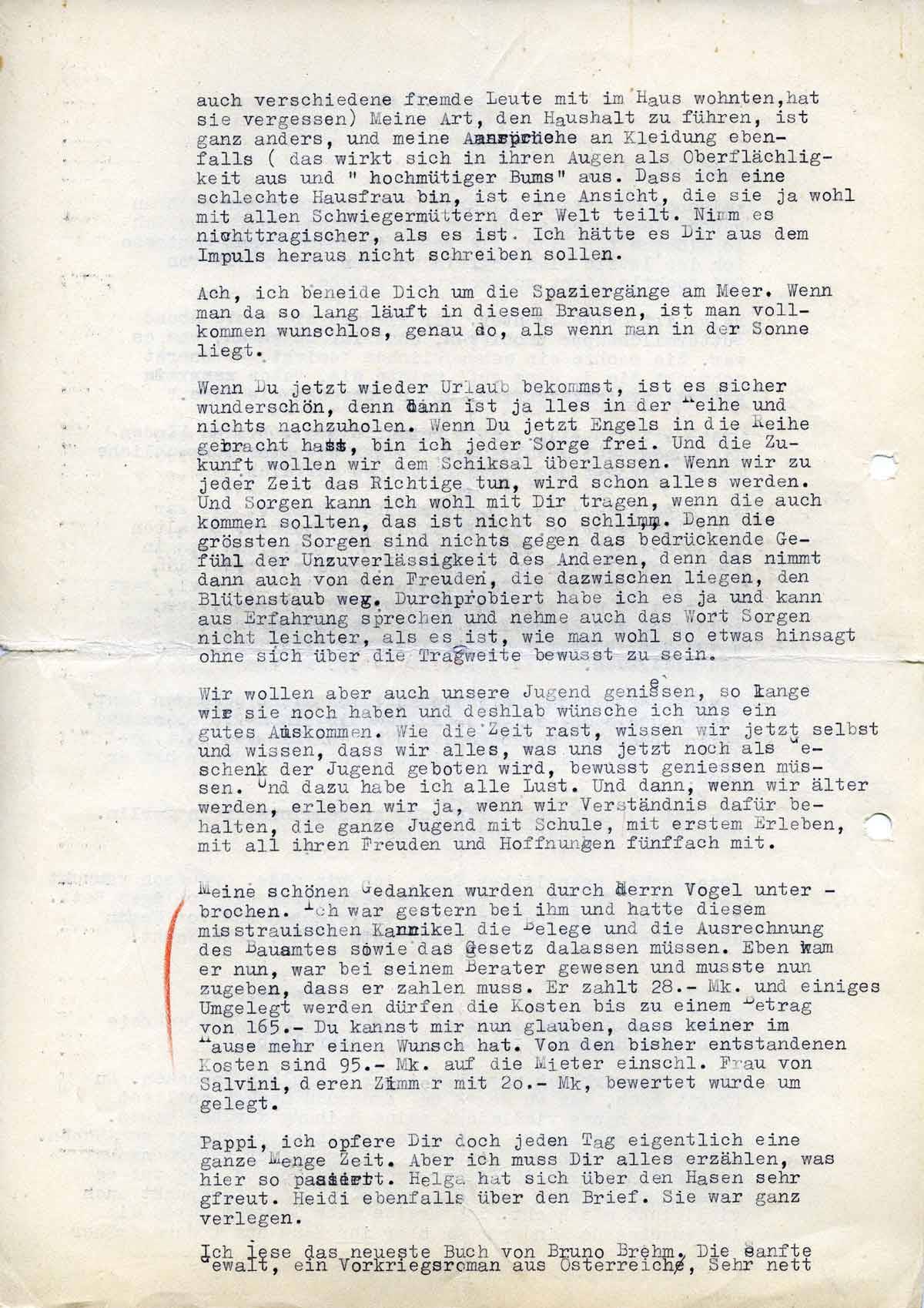 Pappi, ich opfere Dir doch jeden Tag eigentlilch eine ganze Menge Zeit. Aber ich muss Dir alles erzähllen, was hier so passiert. Helga hat sich über den Hasen sehr gefreut. Heidi ebenfalls über den Brief. Sie war ganz verlegen.
