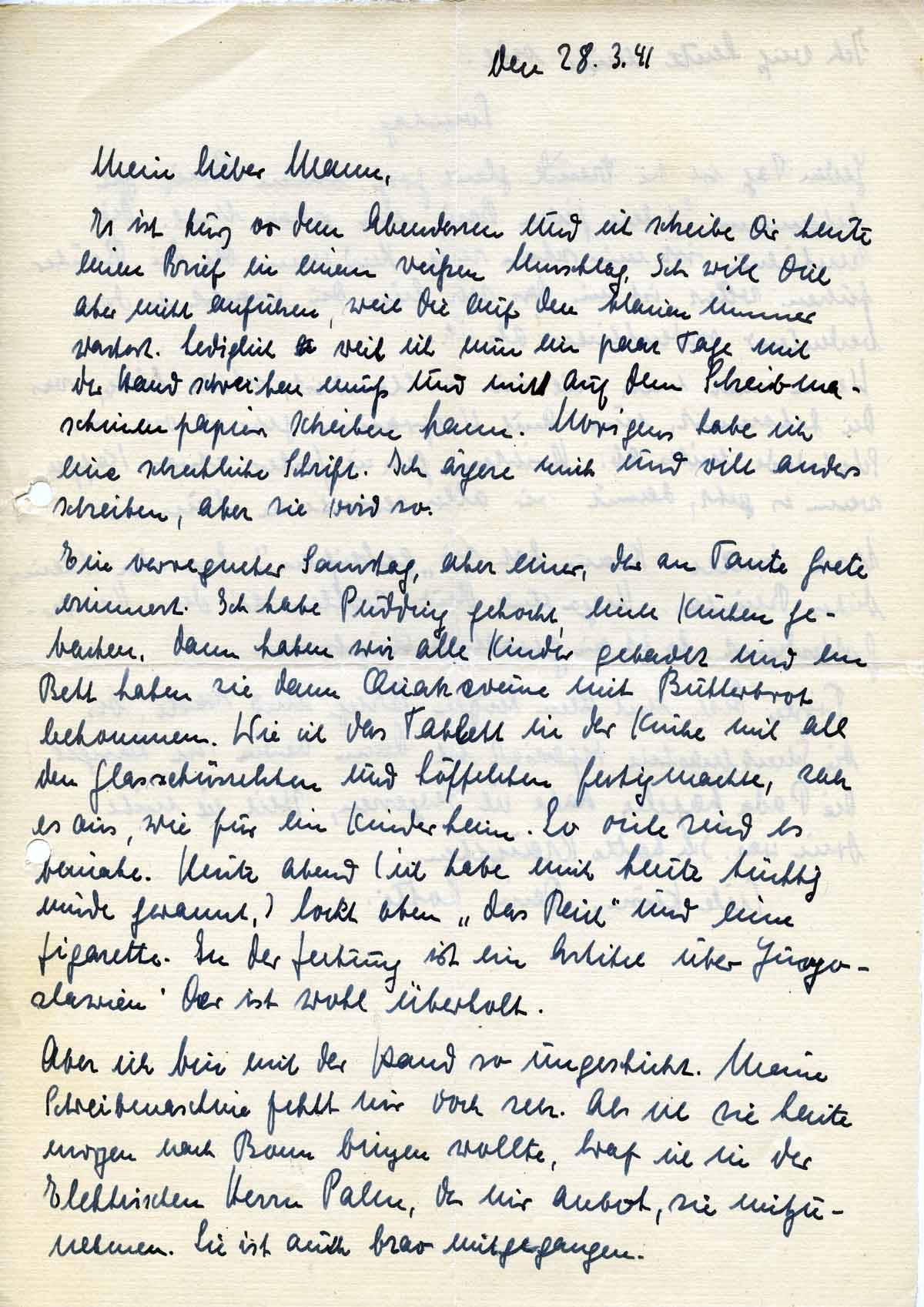 Charlotte Endemann an ihren Mann Harald, 28. März 1941