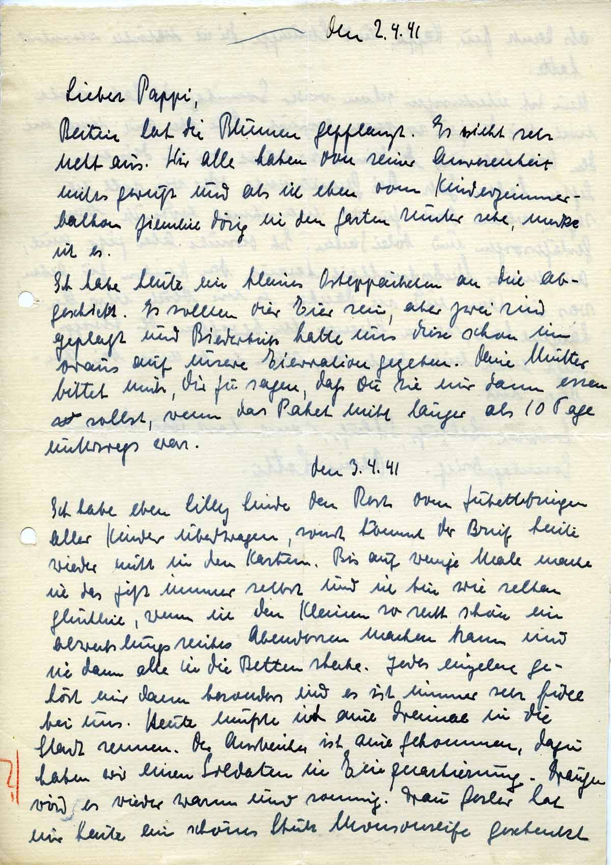 Charlotte Endemann an ihren Mann Harald, 2. April 1941
