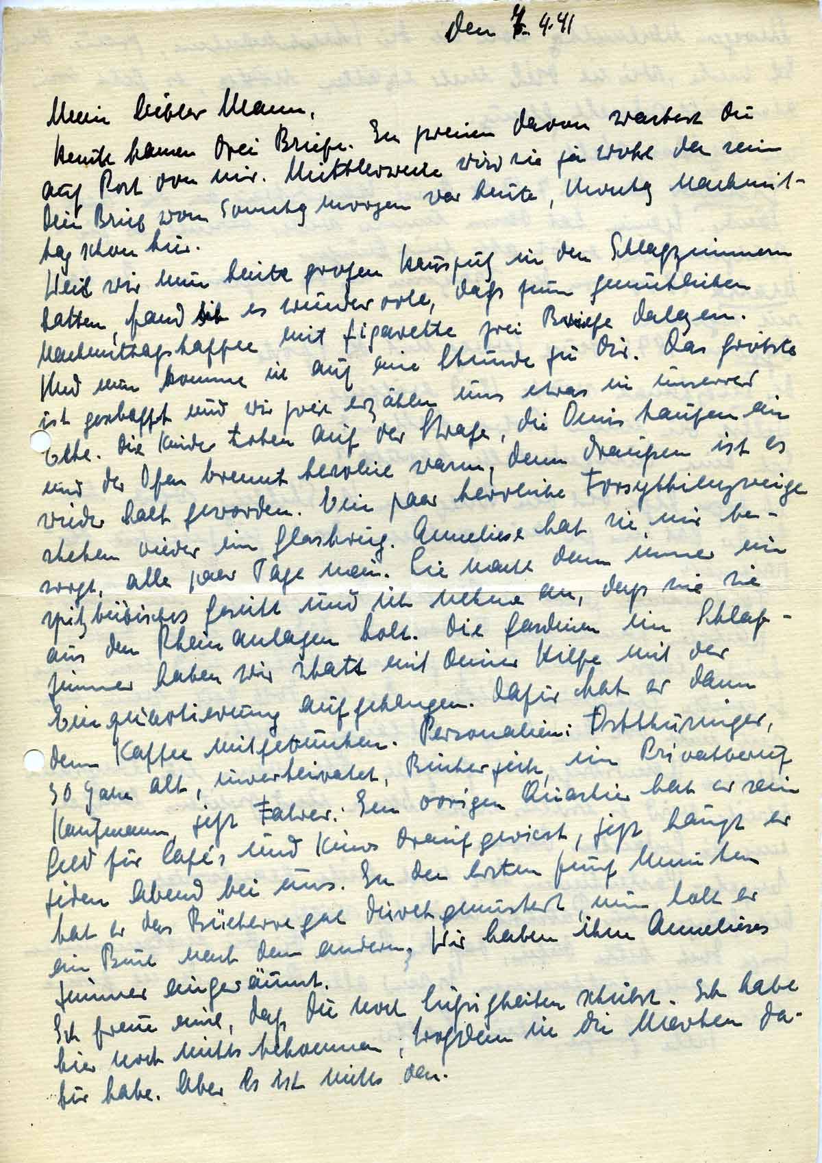 Charlotte Endemann an ihren Mann Harald, 7. April 1941