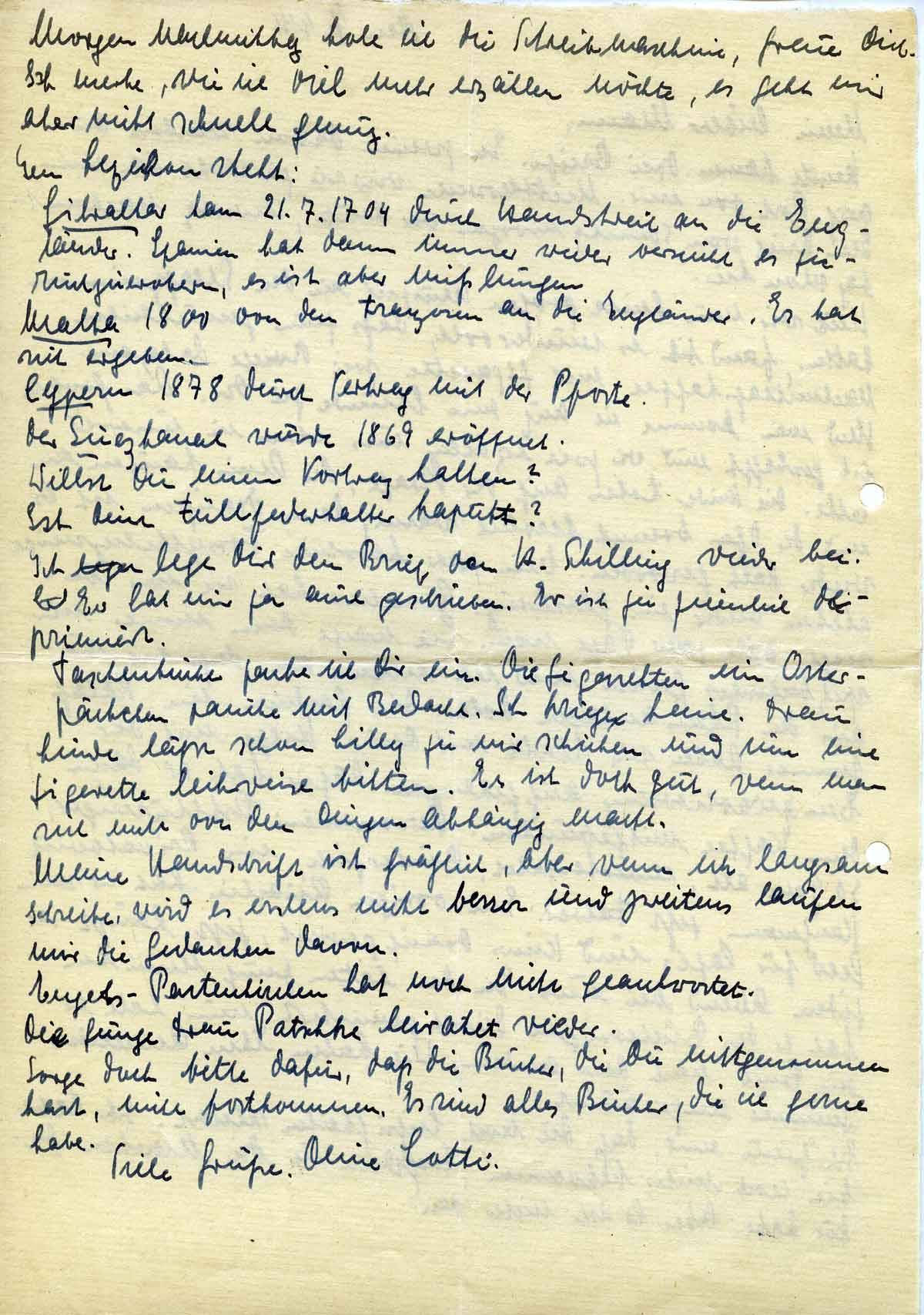 Morgen nachmittag hole ich die Schreibmaschine, freu Dich. Ich merke, wie ich viel mehr erzählen möchte, es geht mir aber nicht schnell genug.